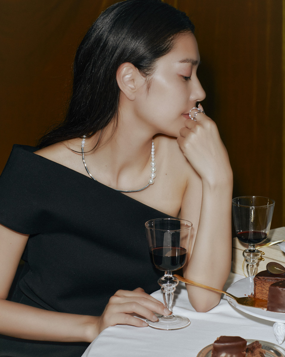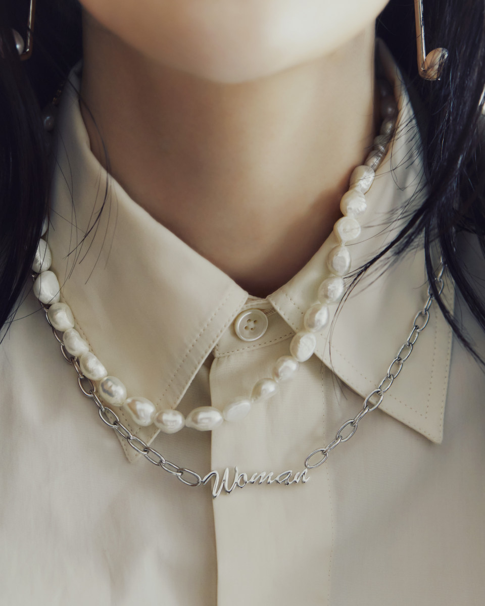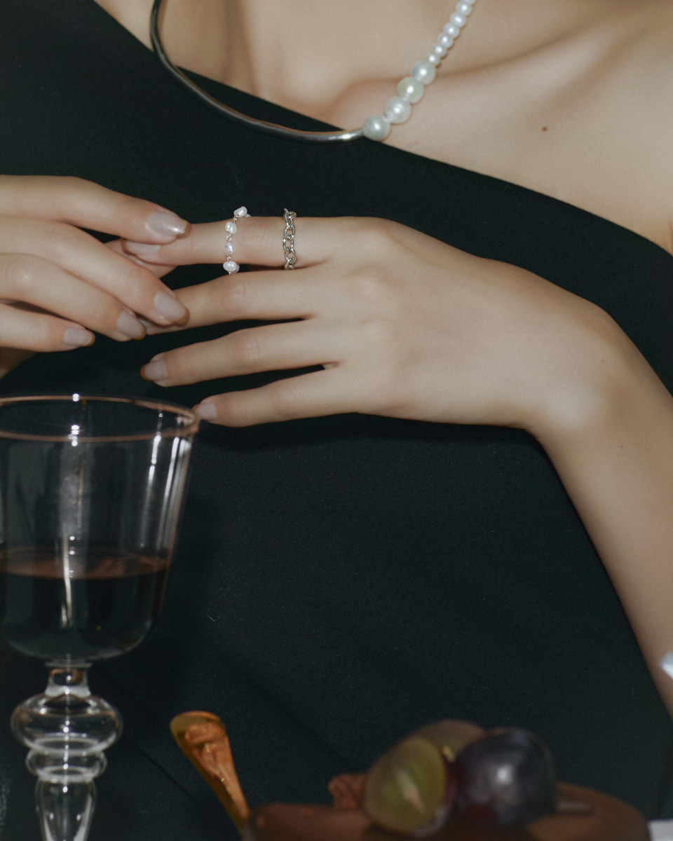 淡水パールニュアンスリンクチョーカーネックレス(シルバー)