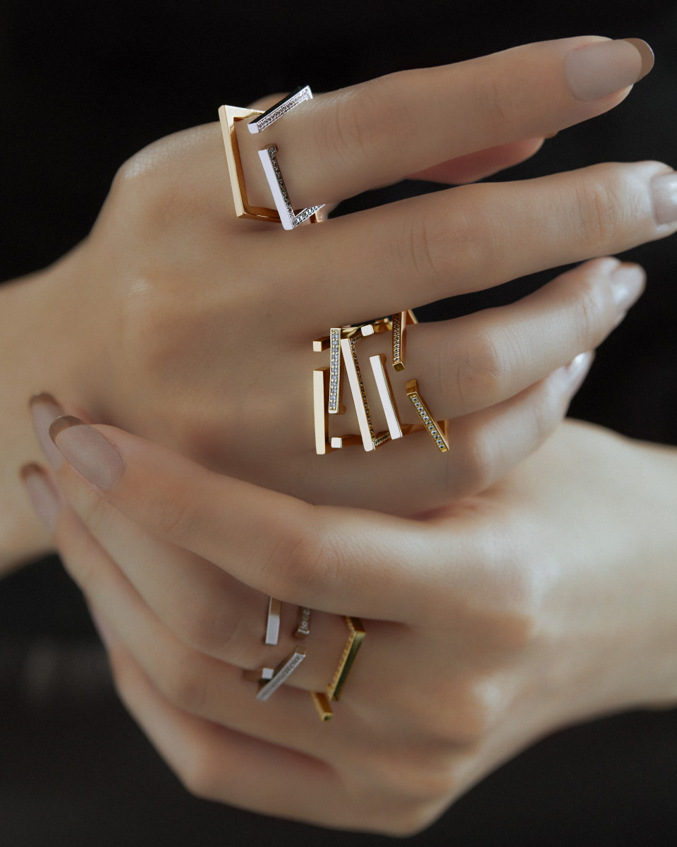 ストラクチャルトップビジューイヤーカフリング(ゴールド)