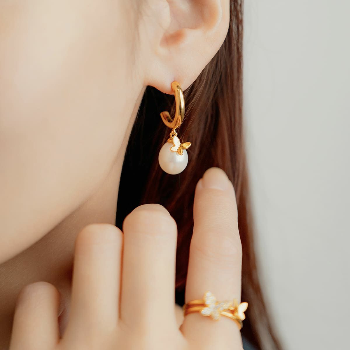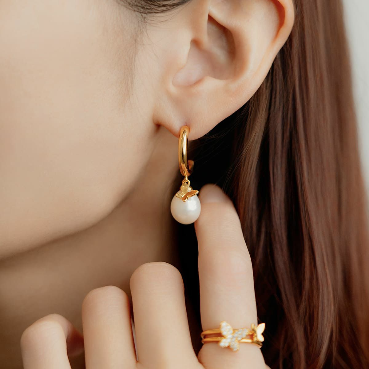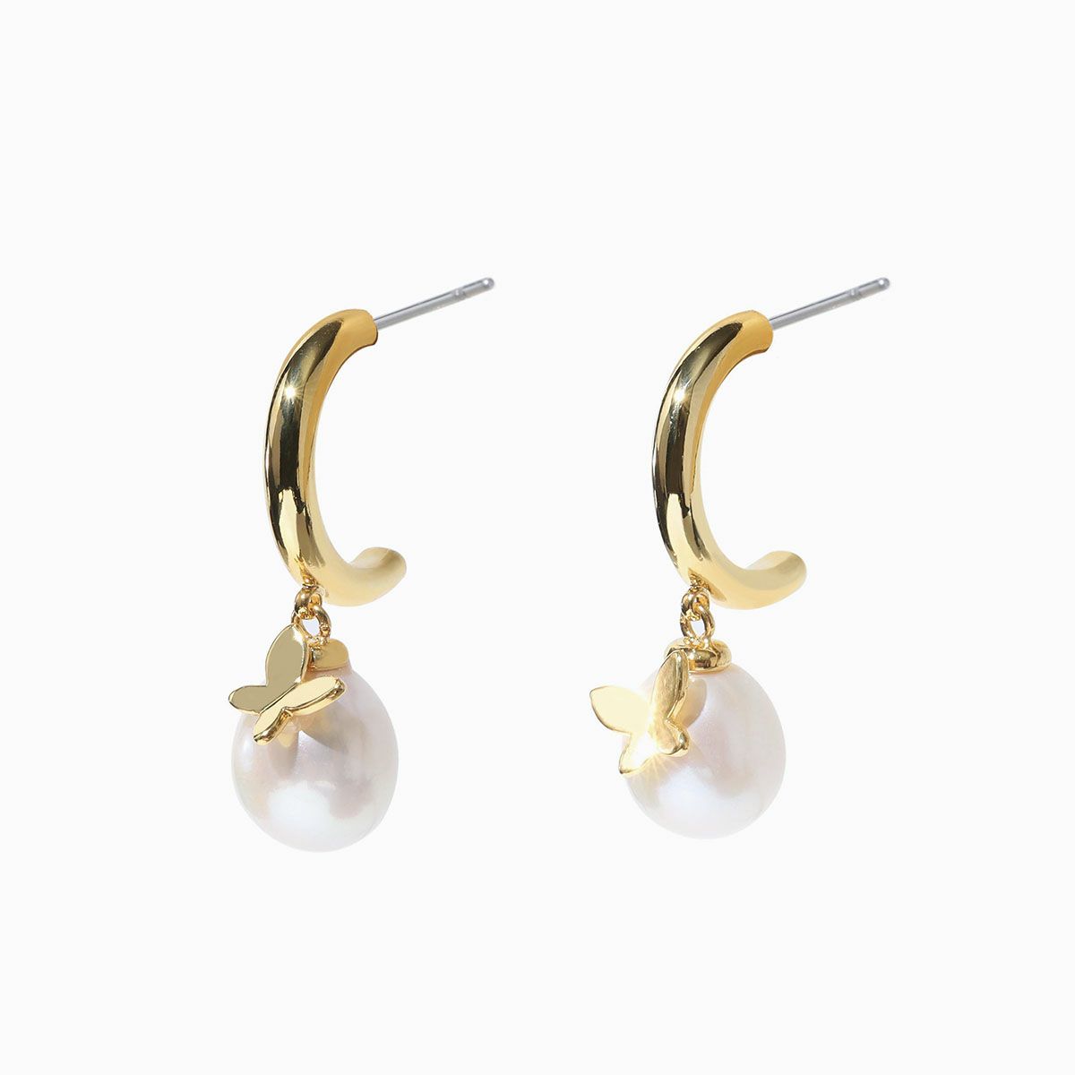 バタフライパールフープピアス