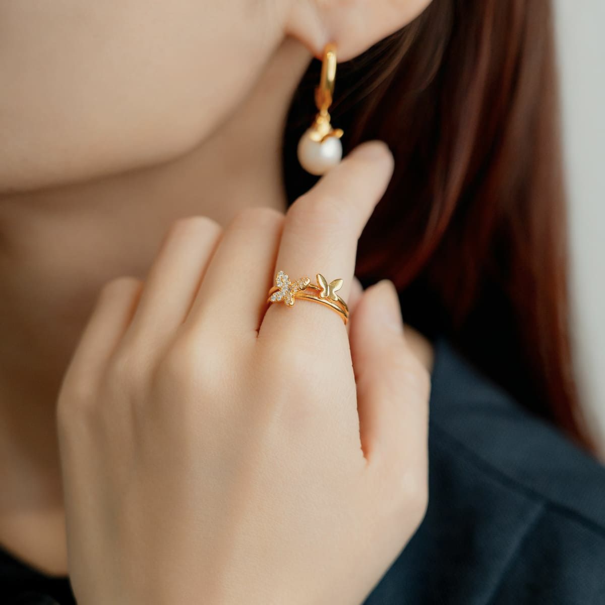 トリプルバタフライスタッドピアス