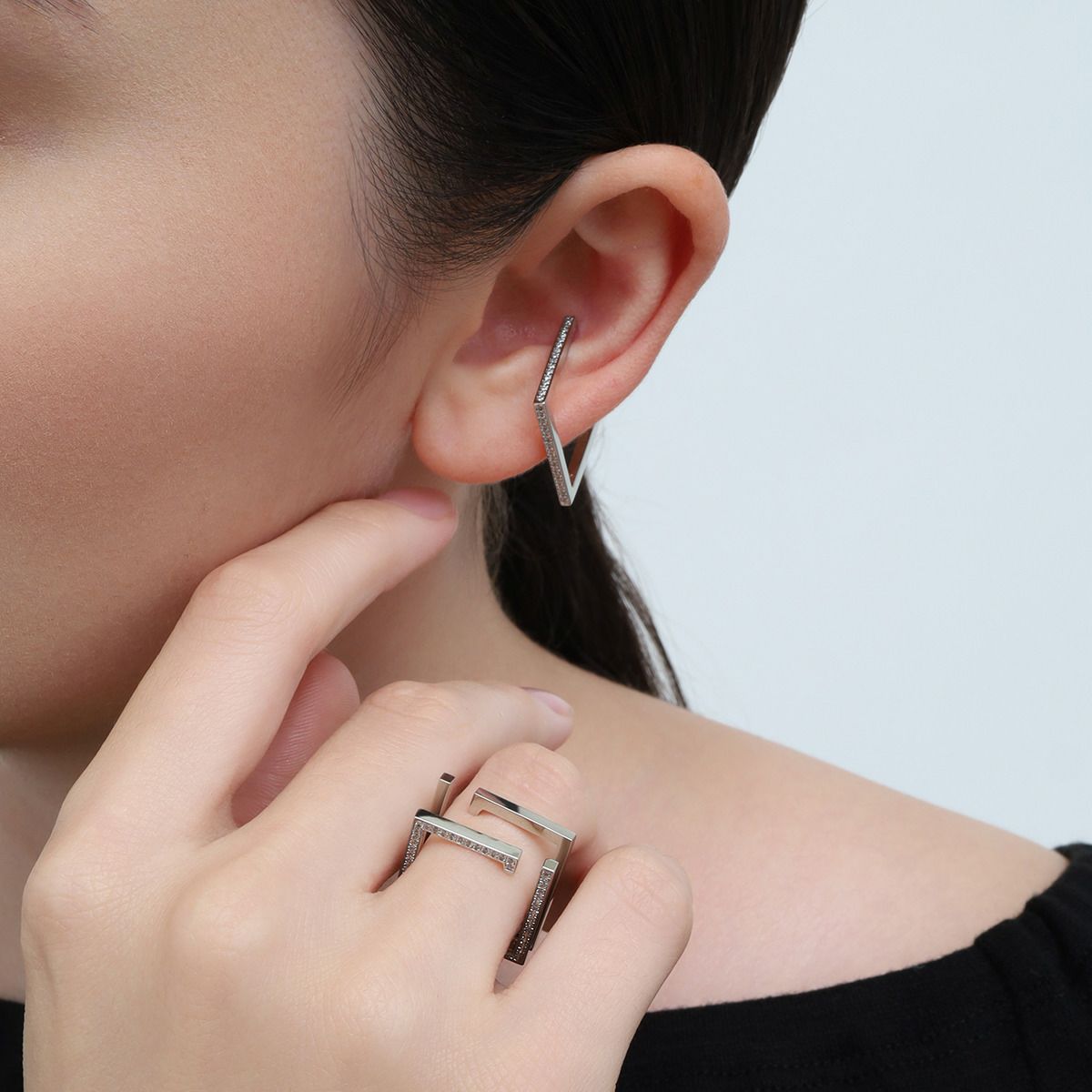 ストラクチャルサイドビジューイヤーカフリング(シルバー)