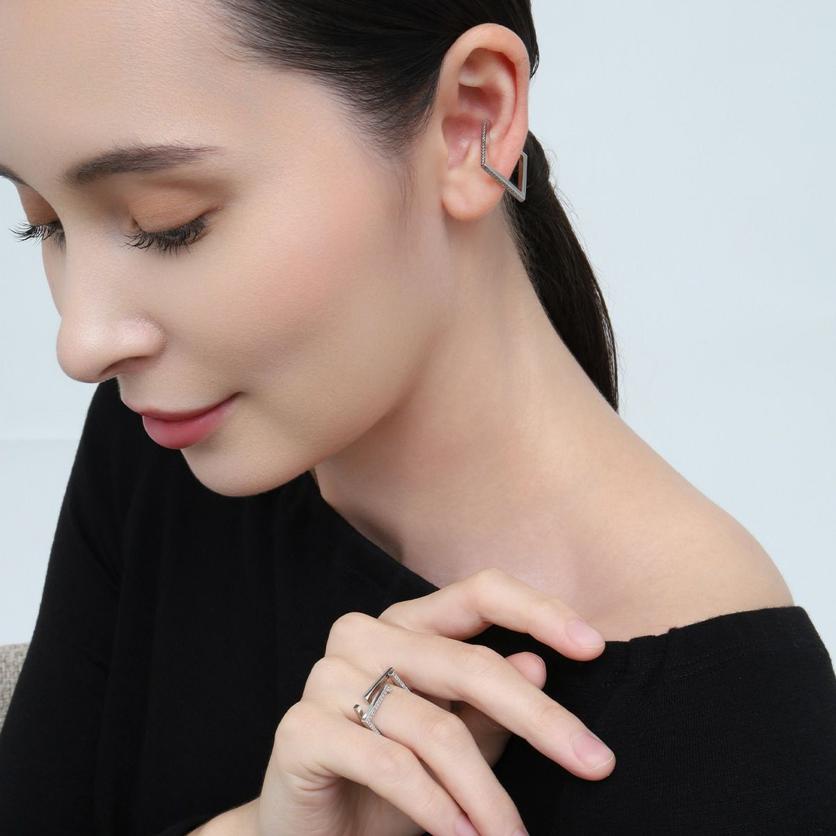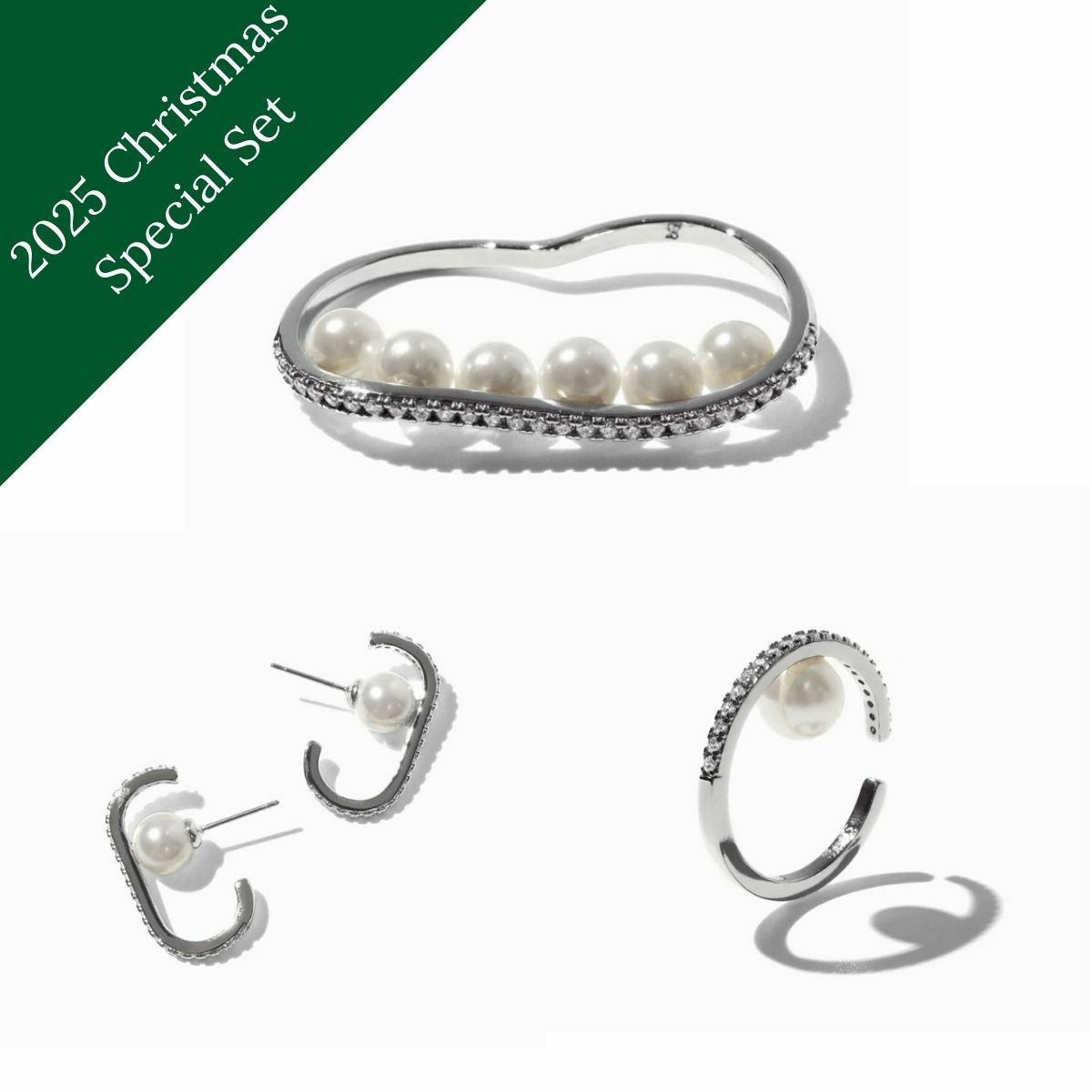 セットシャイニーイヤーカフリング(シルバー)
