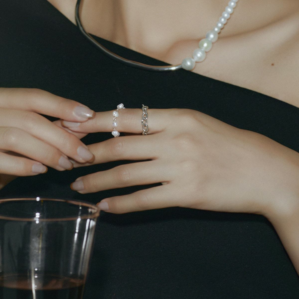 ビジューラインパールフィンガーリング(シルバー)