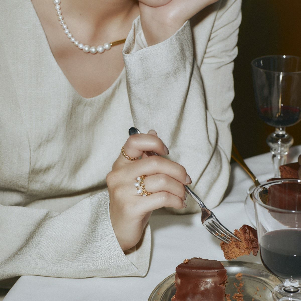 ビジューラインパールフィンガーリング(ゴールド)