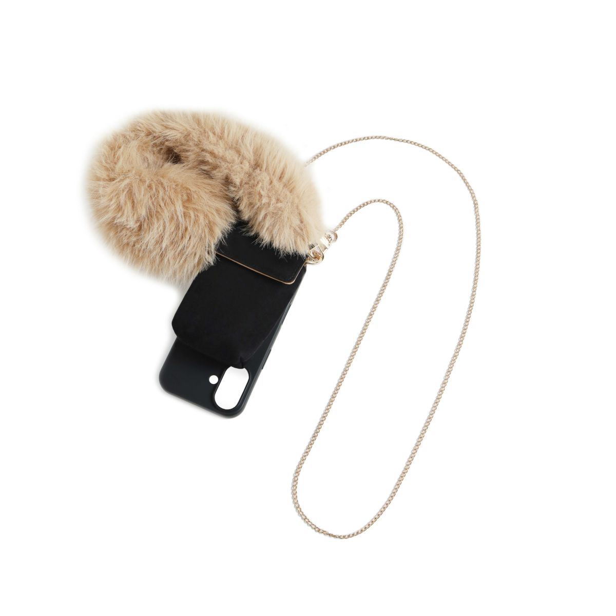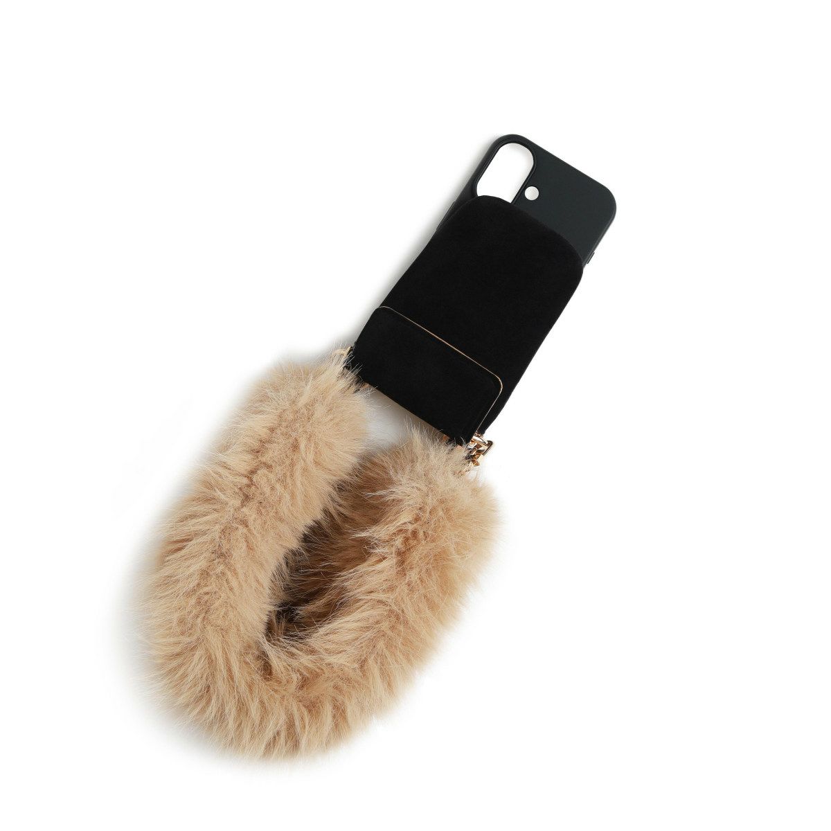 プティポーチチェーン付きiPhoneケース ファーハンドル(ブラック)