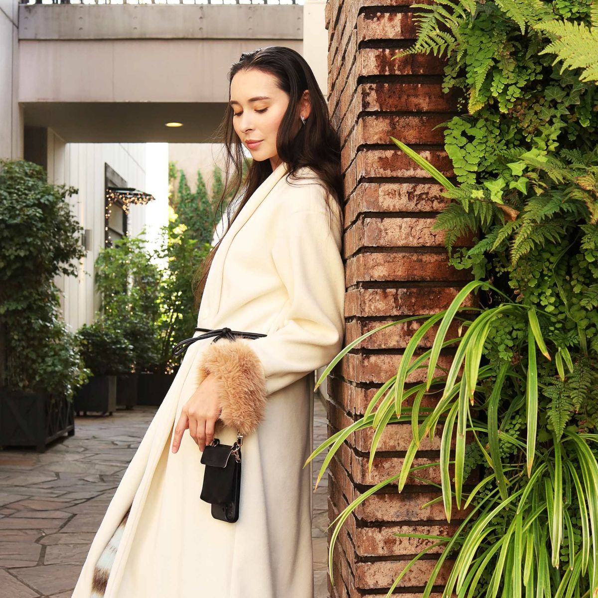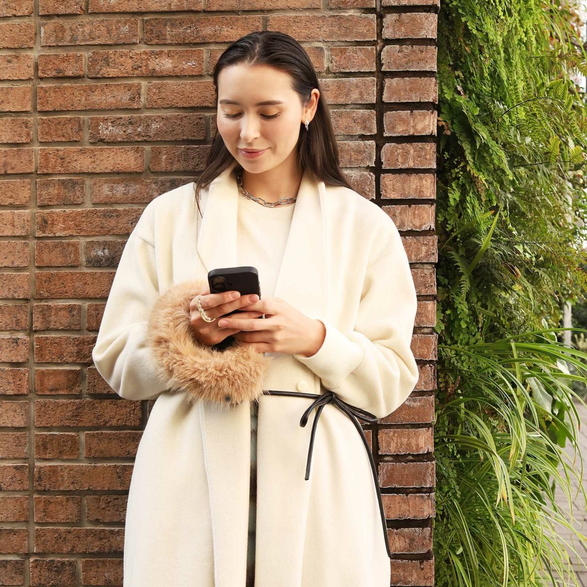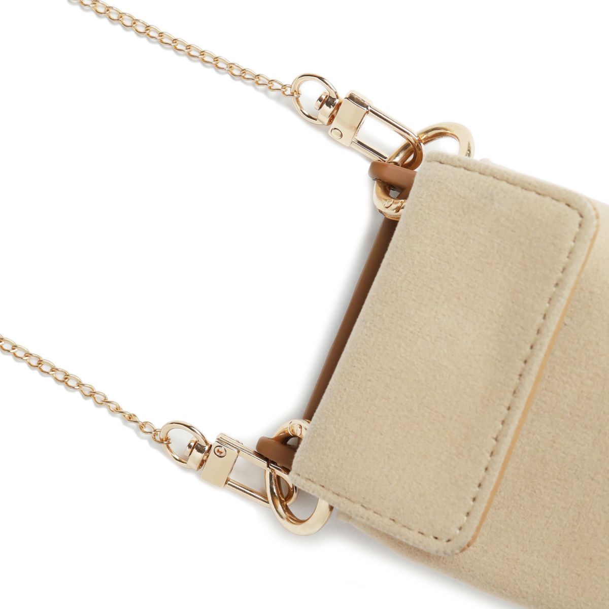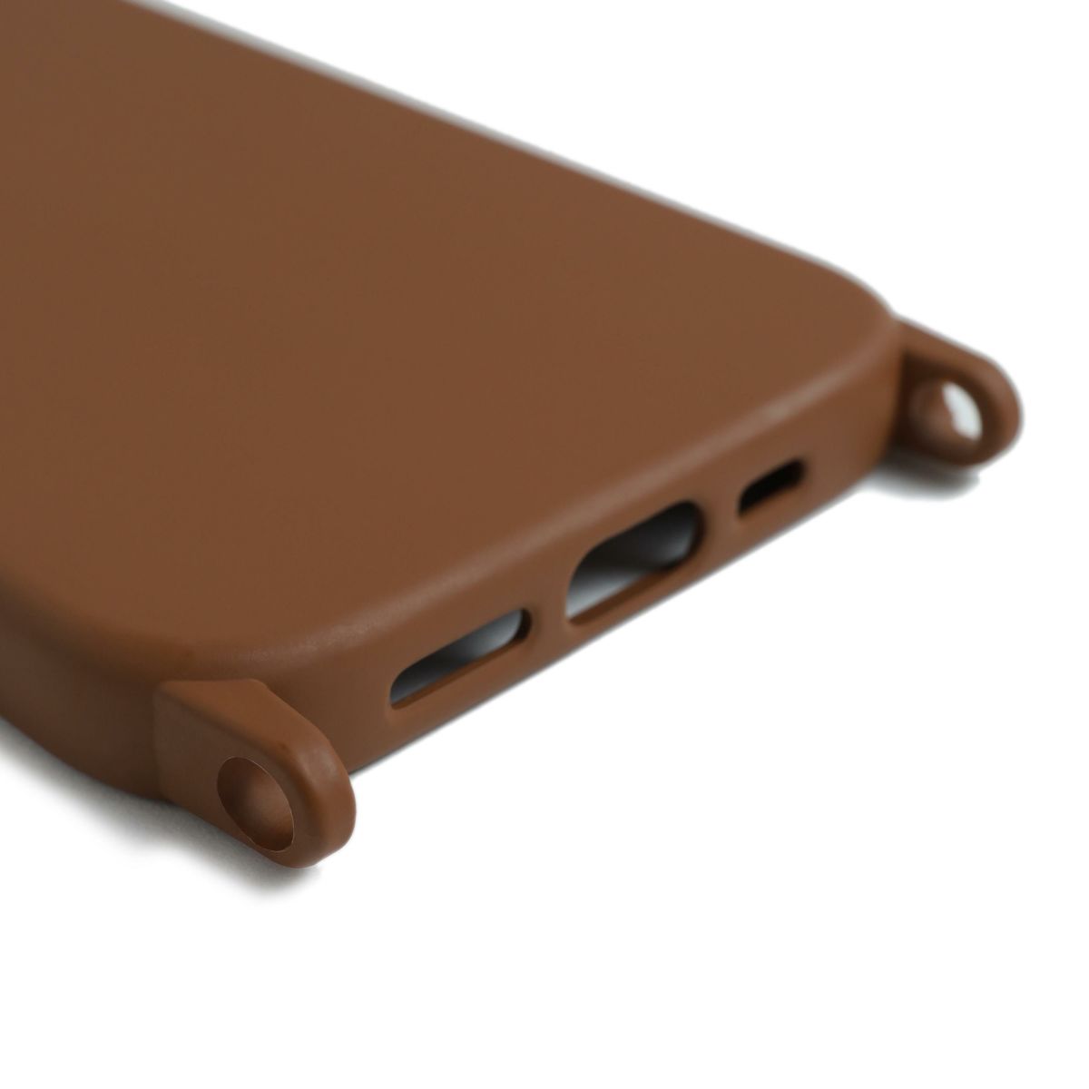 プティポーチチェーン付きiPhoneケース ファーハンドル(ブラウン)