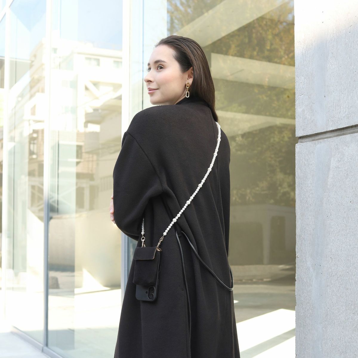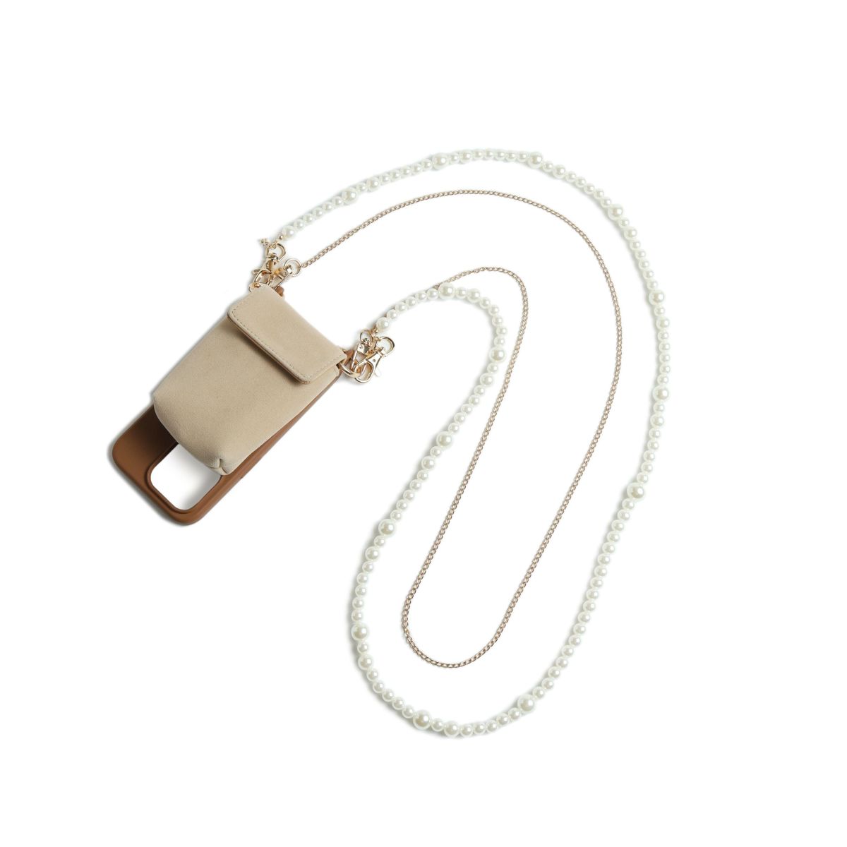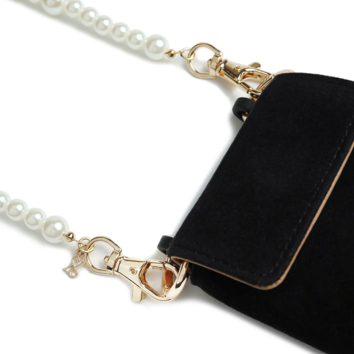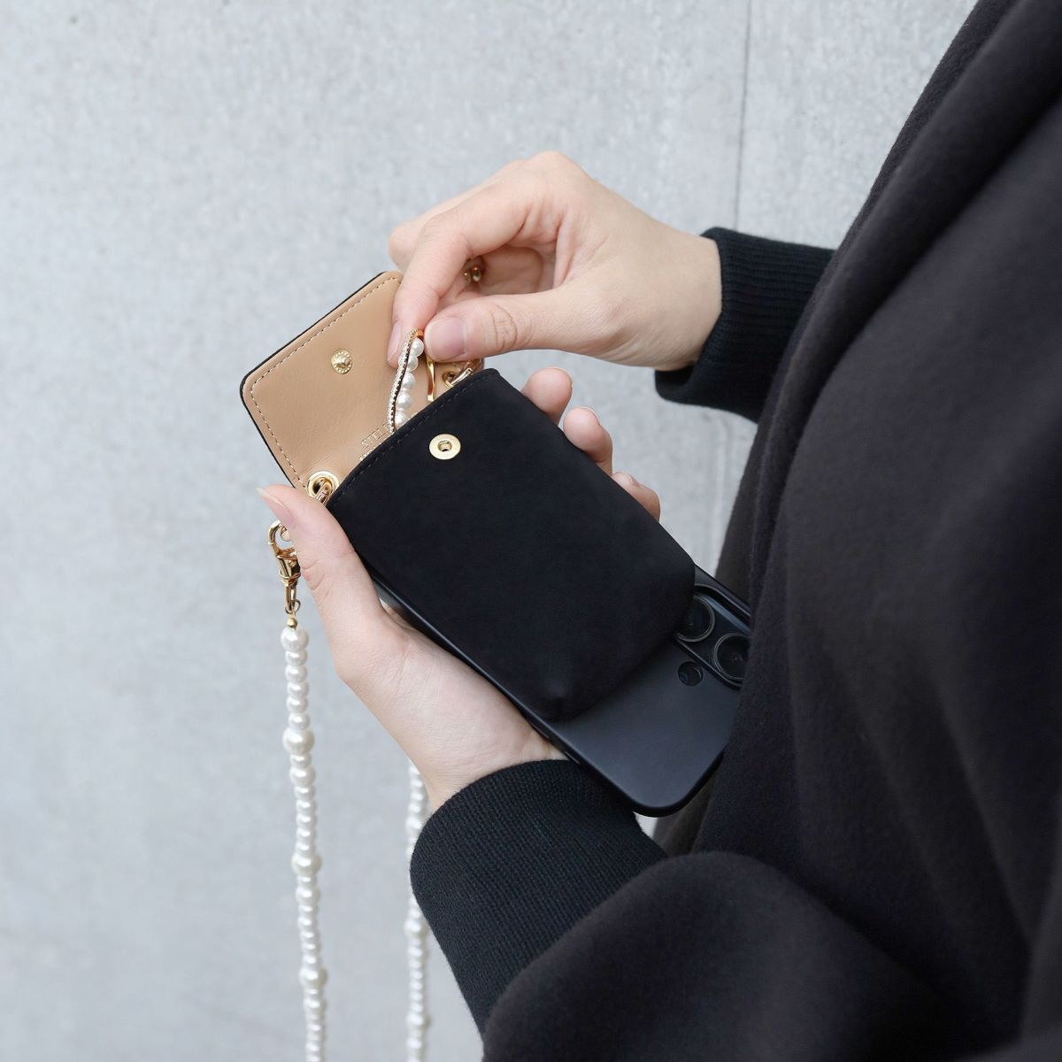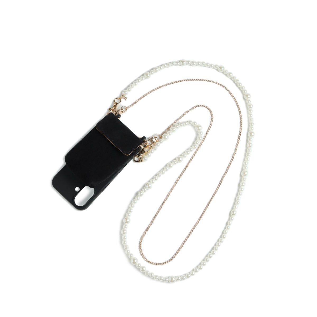 プティポーチチェーン付きiPhoneケース パールショルダー(ブラック)