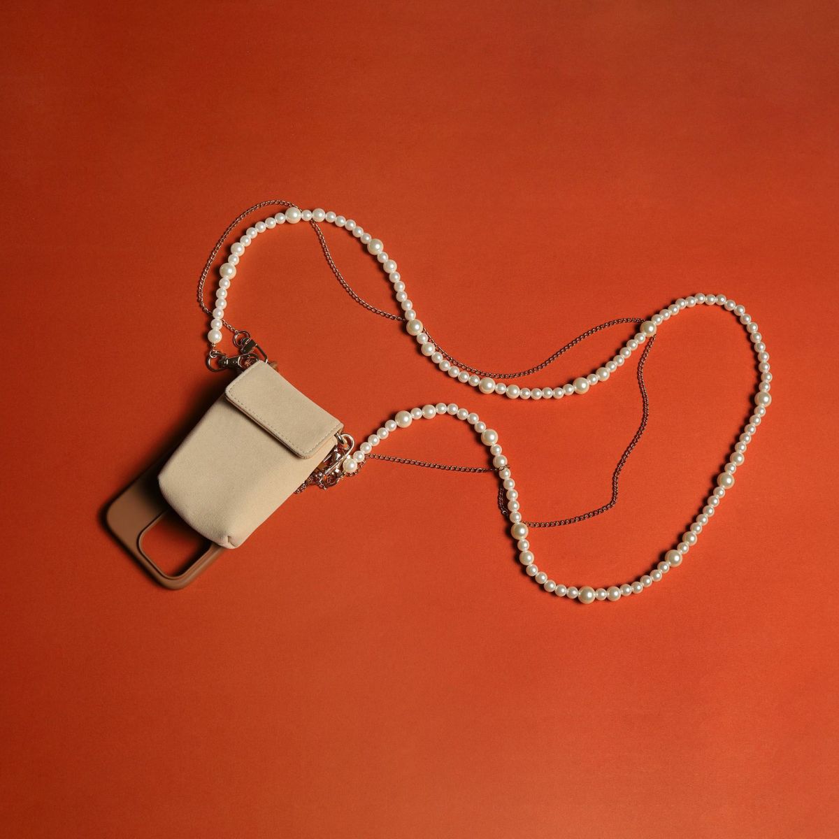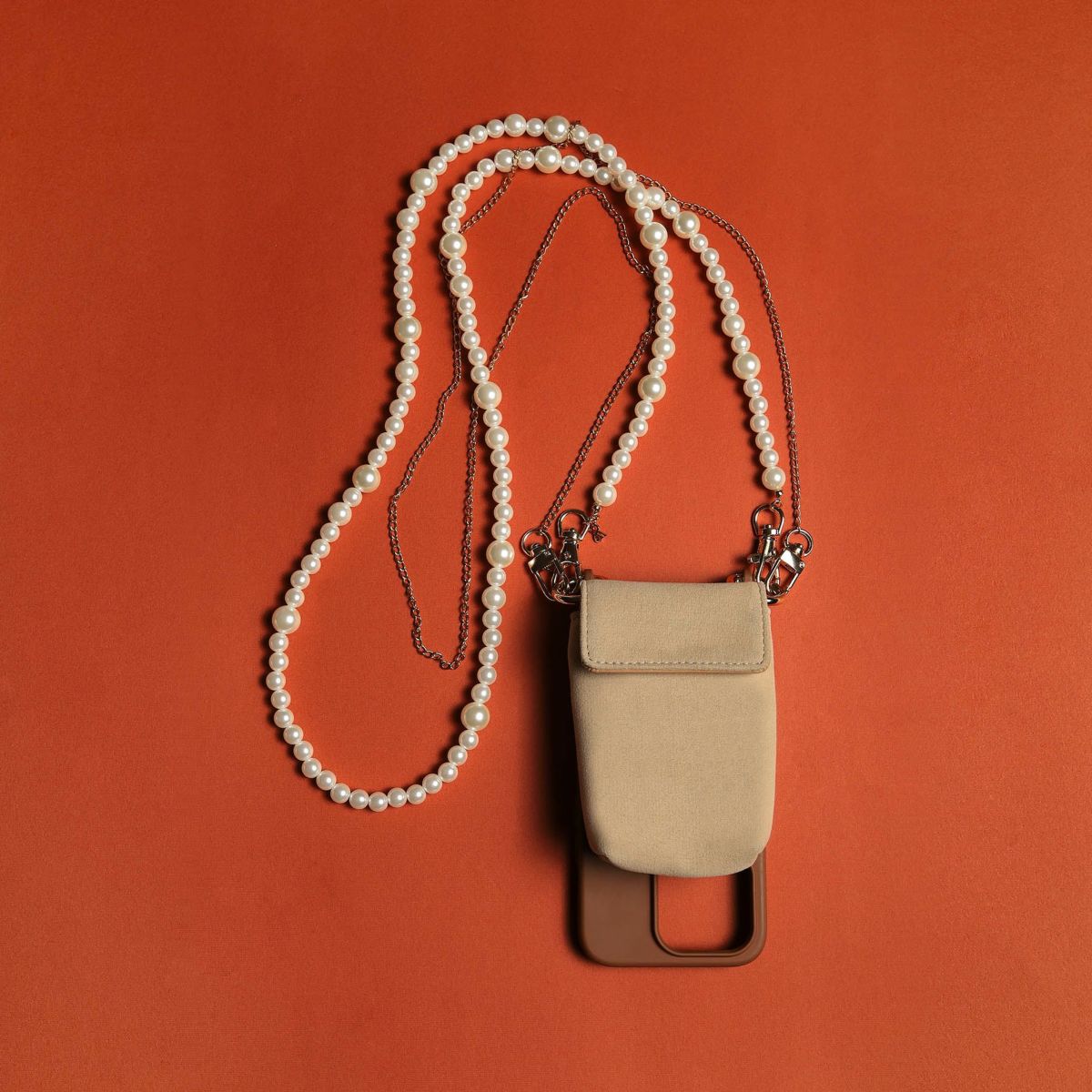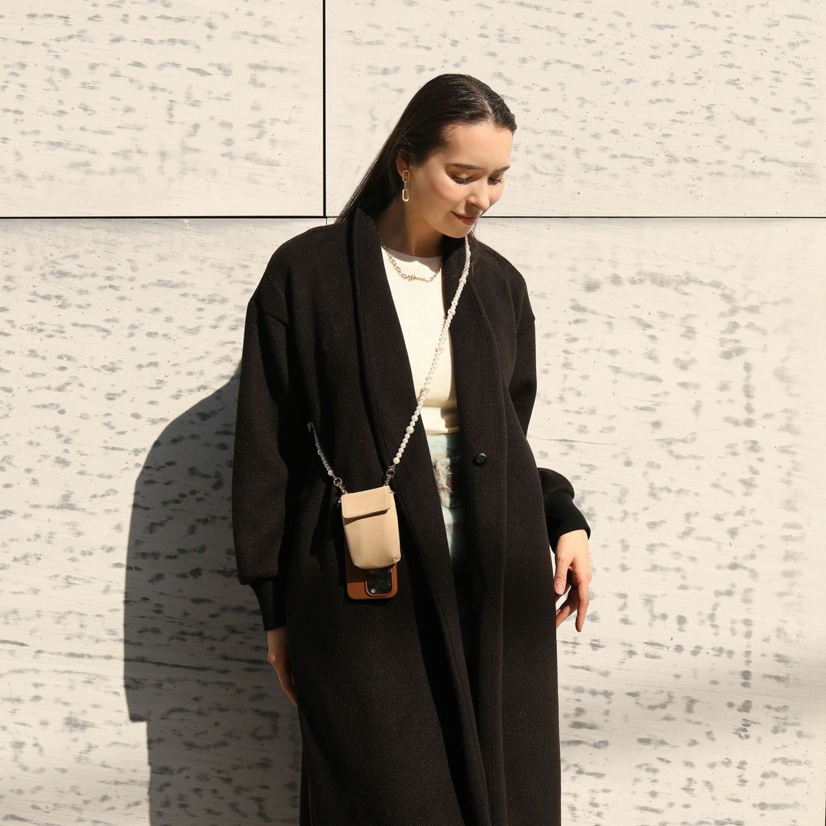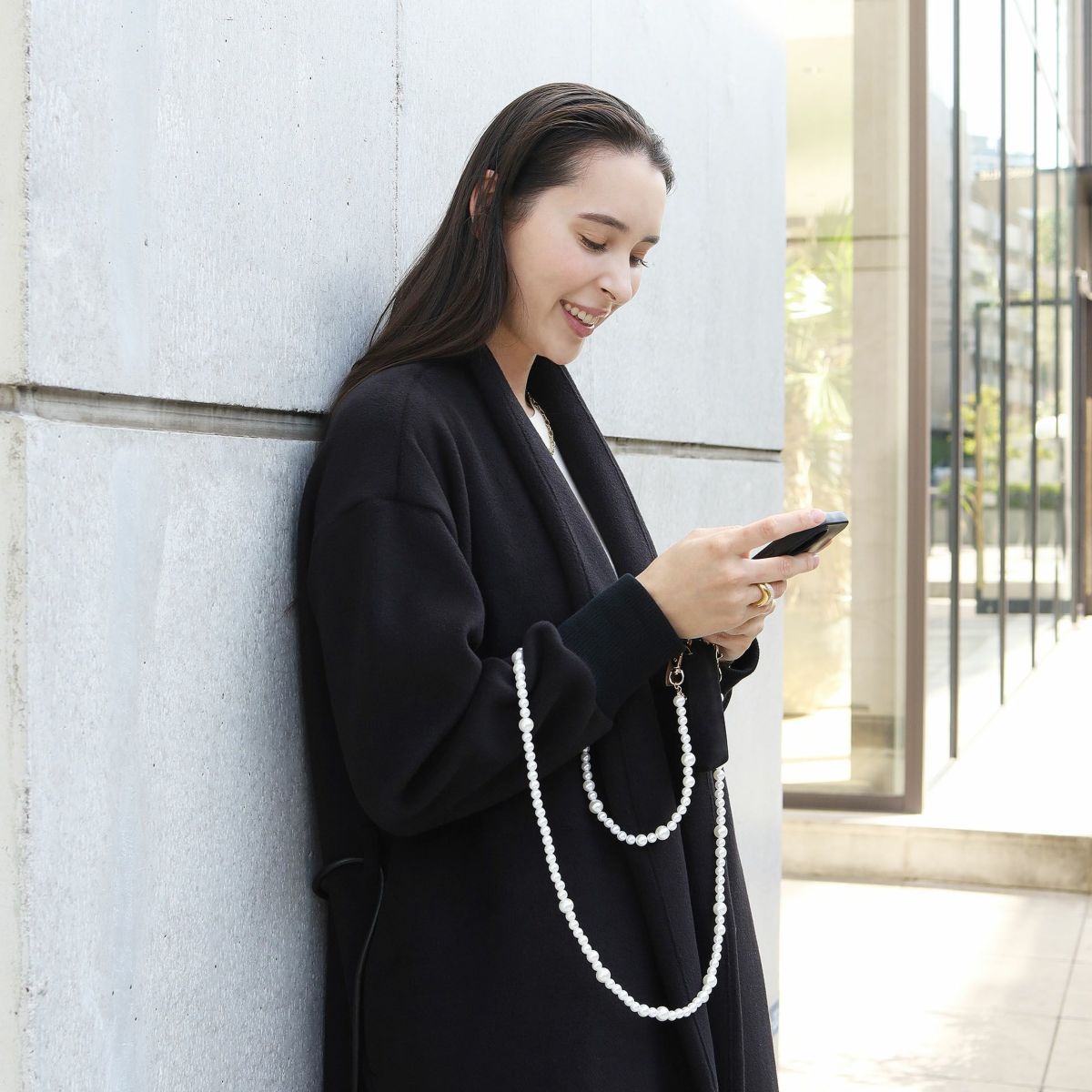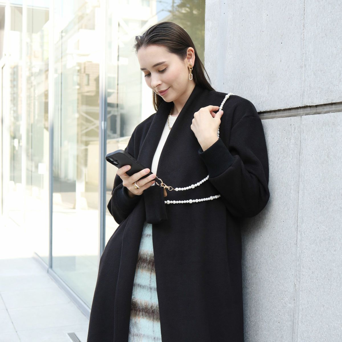 プティポーチチェーン付きiPhoneケース パールショルダー(ブラック)