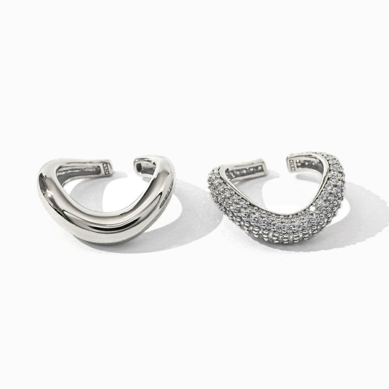 イヤーカフとしてもリングとしても楽しめるマルチなアイテム。表情が異なる2本セットなのでコーデイネートの幅が広がるのも嬉しいポイントです。贅沢にあしらったジルコニアの輝きを際立たせ、ラグジュアリーな雰囲気に。ゆるやかな曲線にすることで立体感が出て耳元、手元をしなやかに馴染んで上品な印象にしています。コーディネートを選ばずカジュアルにもきれいめにもデイリーに活躍してくれるアイテムです。同シリーズのネックレス、ブレスレットと合わせてより華やかな印象に。フォーマルシーンはもちろん、女子会など幅広いシーンでお使いいただけます。