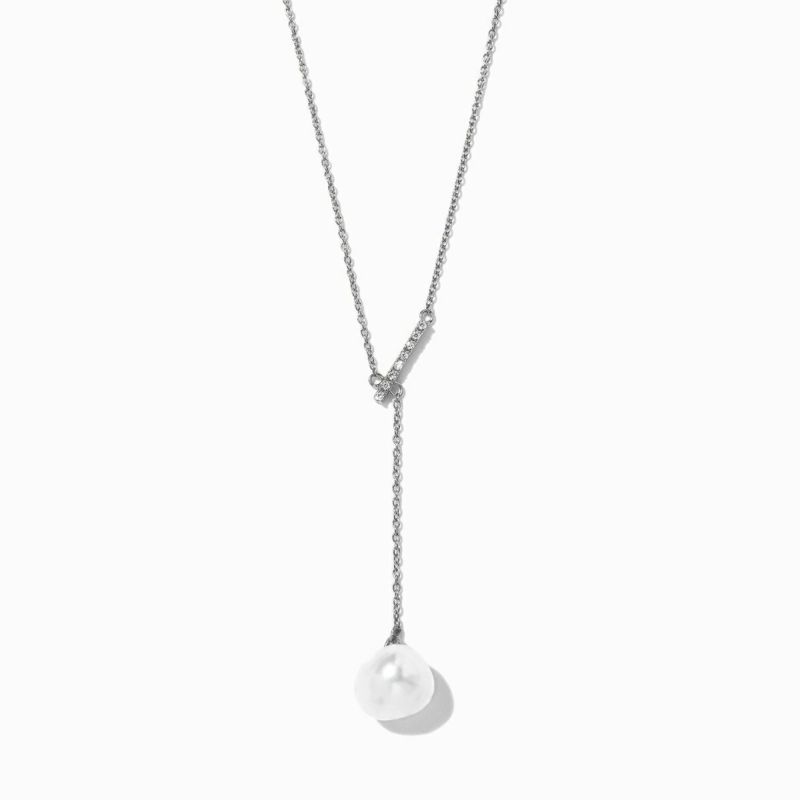 淡水パール×ビジューバーY字ネックレス(シルバー)