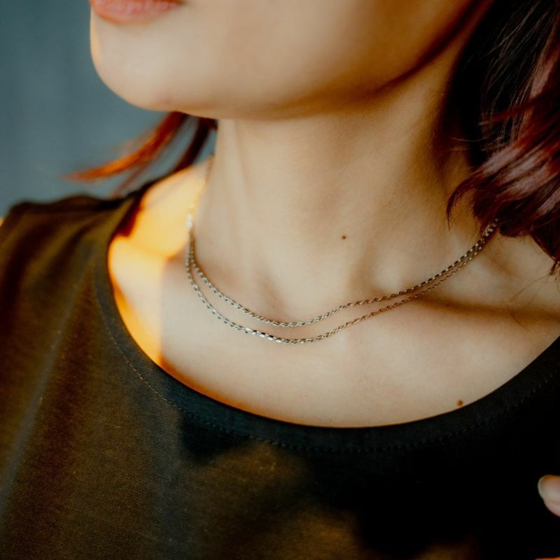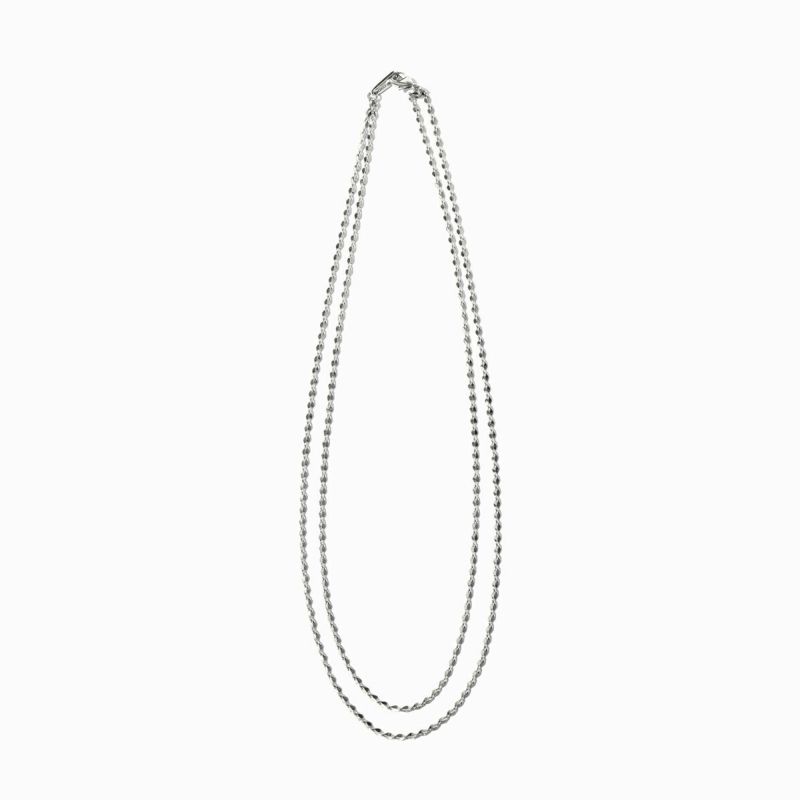 どんなコーディネートにもしっかりとマッチするネックレス。長さの異なるチェーンが重ね着けのような動きを見せ、抜け感を演出します。シルバーコーティングを施した面の大きいペタルのチェーンは、光が当たることで輝き、繊細で上品な雰囲気に。コーディネートを選ばずカジュアルにもきれいめにもデイリーに活躍してくれるアイテムです。 同シリーズのアイテムと合わせてより華やかな印象に。普段使いはもちろん、フォーマルシーンでもお使いいただけます。