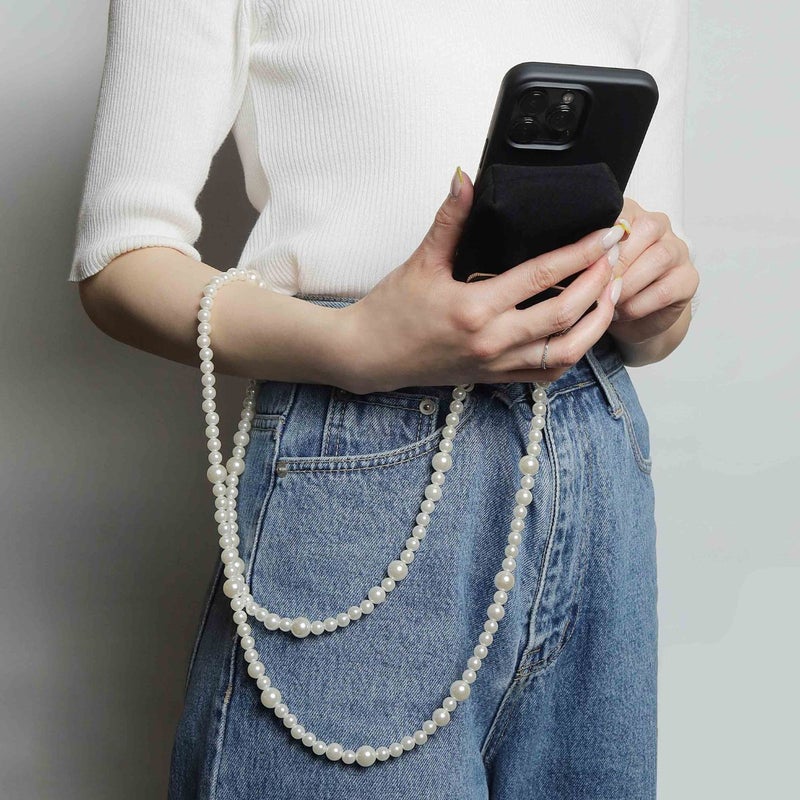 プティポーチチェーン付きiPhoneケース パールショルダー(ブラック)