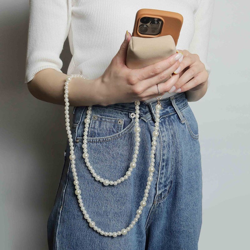 プティポーチチェーン付きiPhoneケース パールショルダーshort(ブラウン)
