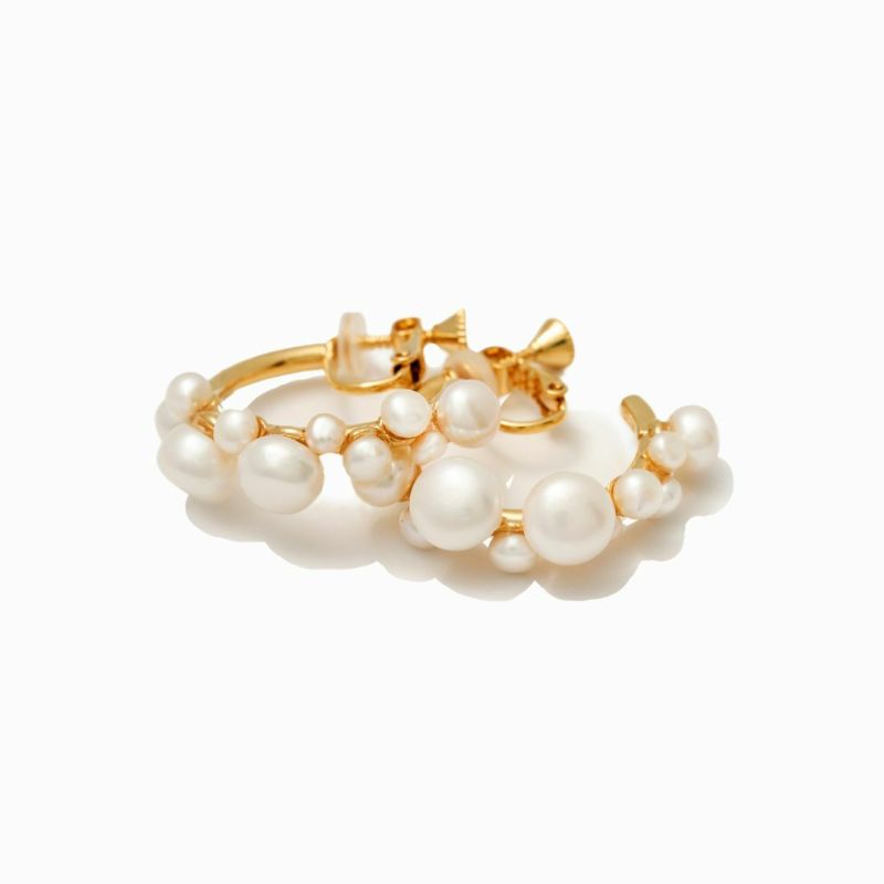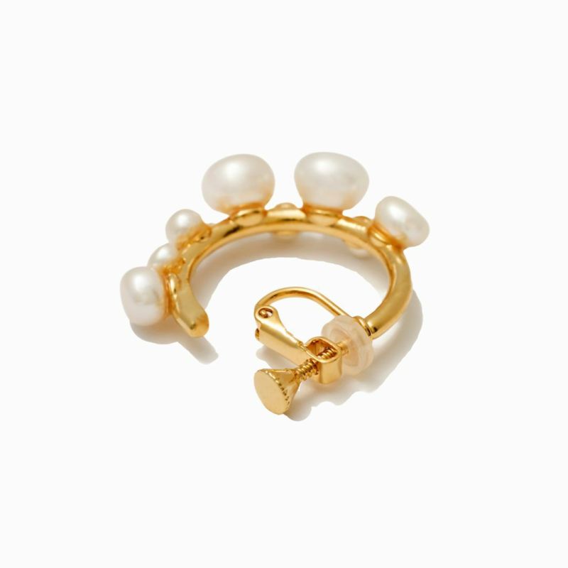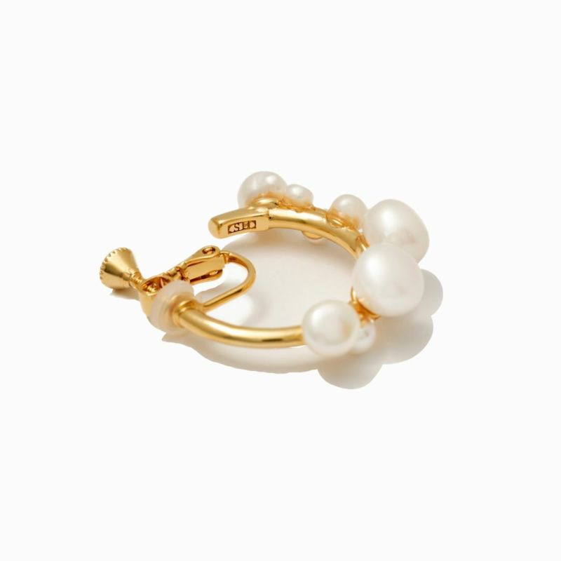 泡のようにはじけるパールをイメージし、まろやかな色味の天然パールで上品な仕上がりにしています。サイズ違いの淡水パールの表情豊かな仕上がりが楽しめるイヤリング。フェイスラインを華やかに魅せてくれ、程よいボリューム感が小顔効果もあって嬉しいポイントです。人気のフープイヤリングからのバブルシリーズは着けるだけで可愛さが増す、持っておきたいマストアイテム。K18コーティングのゴールドカラーがテリ・ツヤが魅力の淡水パールをより一層引き立てます。フォーマルシーンはもちろん、女子会など幅広いシーンでお使いいただけます。