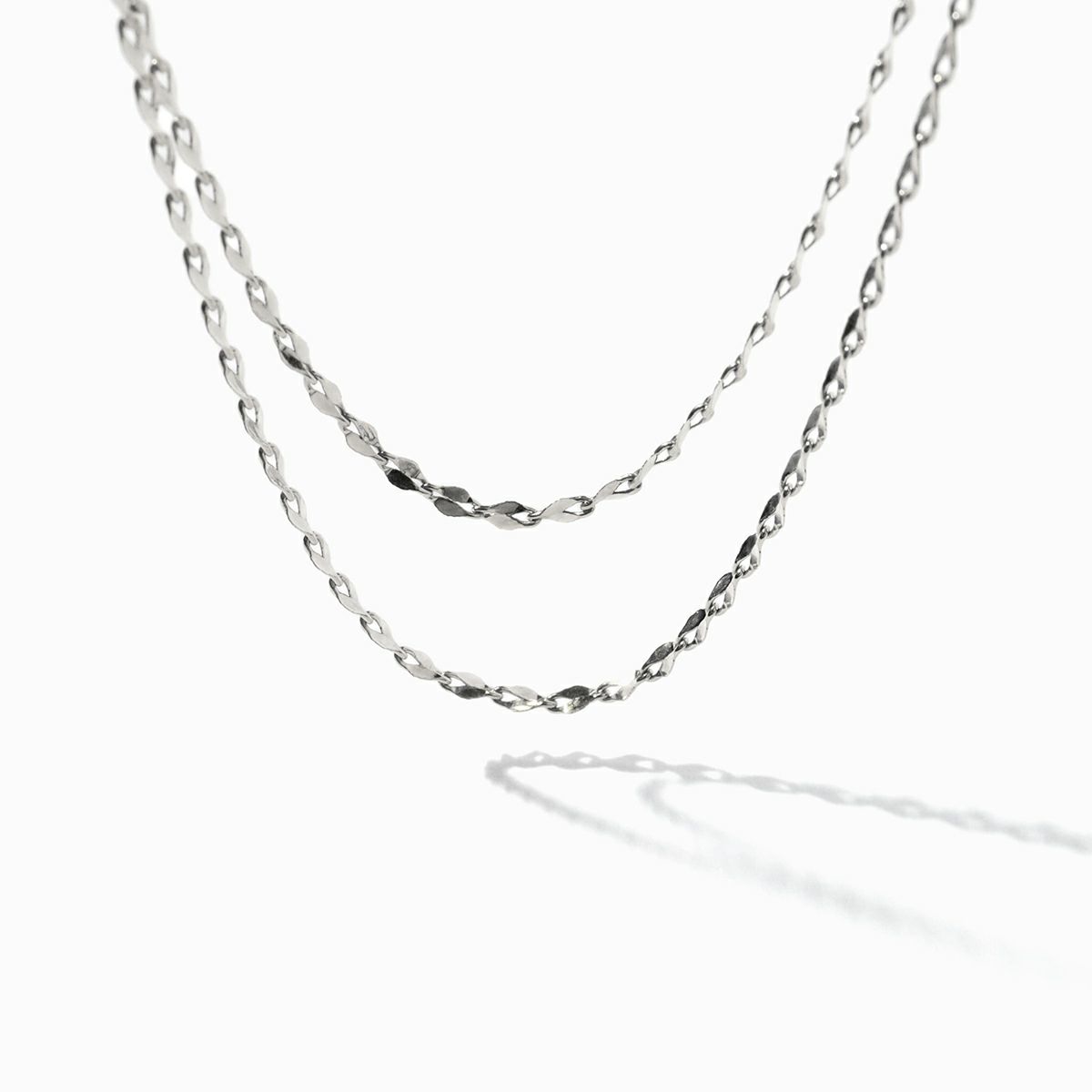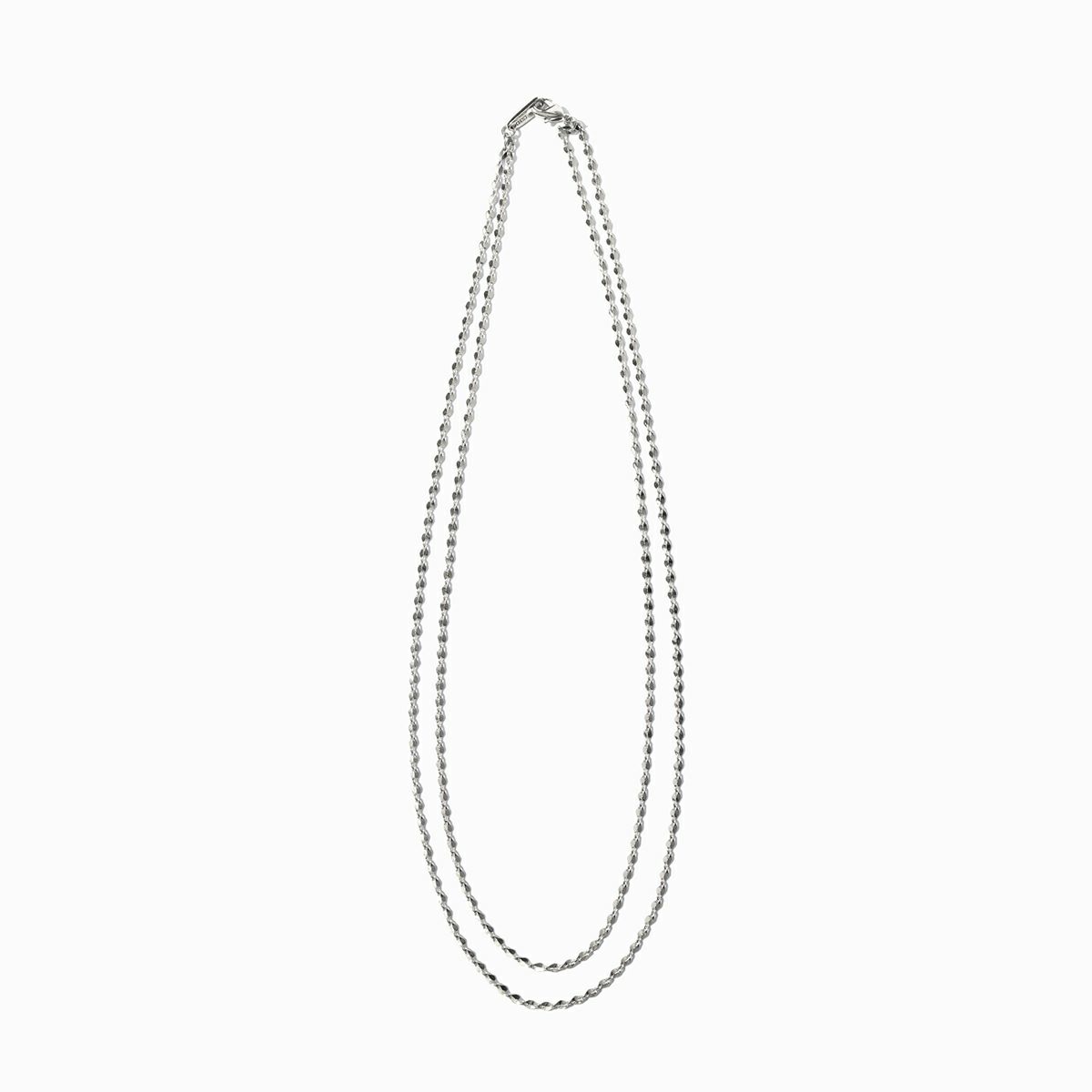 STELLAR HOLLYWOODのロングセラー メタルシャイニーチェーン。 地金を活かした重厚感のあるチェーンと ジルコニア輝くチェーンをミックスし、 スタイリングに存在感と華やかさをプラス。