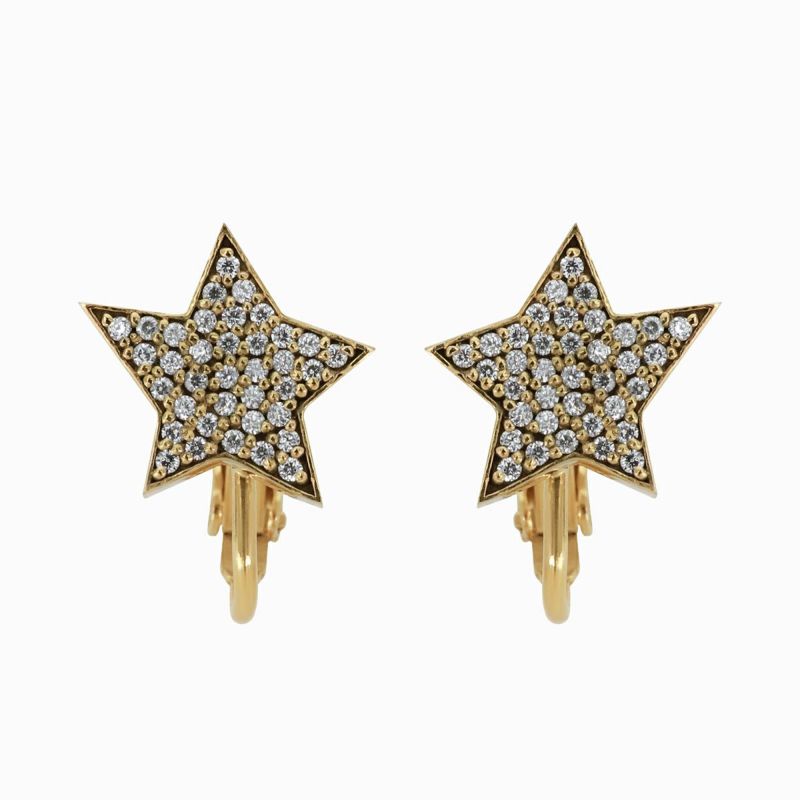 オリジナルデザインのスターに細かく並べたパヴェジルコニアが高級感漂い、華奢なサイズとランダムな輪郭がこなれ感を演出。K18ゴールドコーティングの上品な色味がジルコニアの輝きを一層引き立て、お顔周りをより明るい印象に。