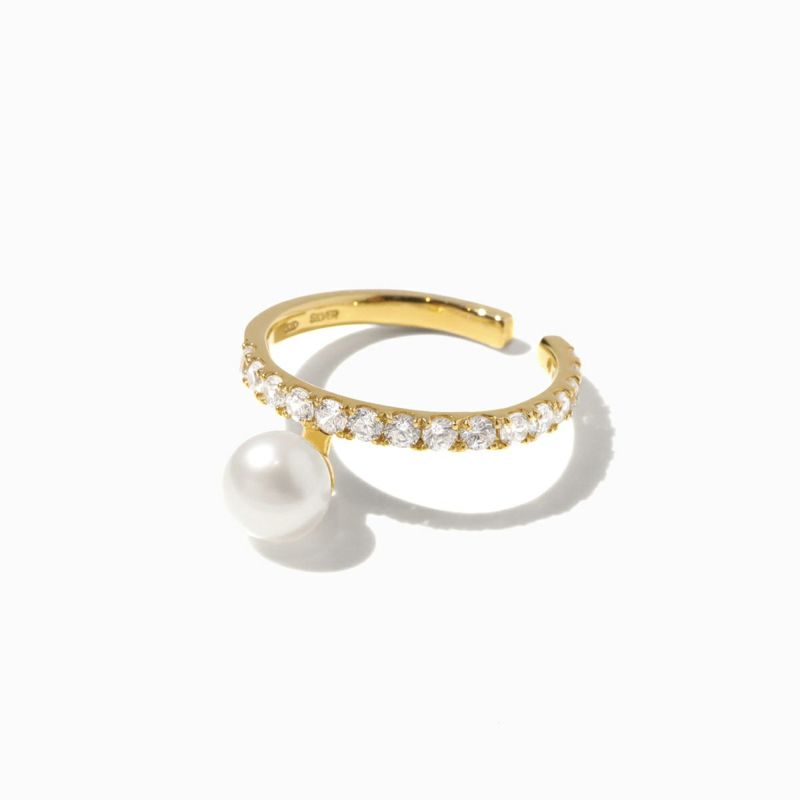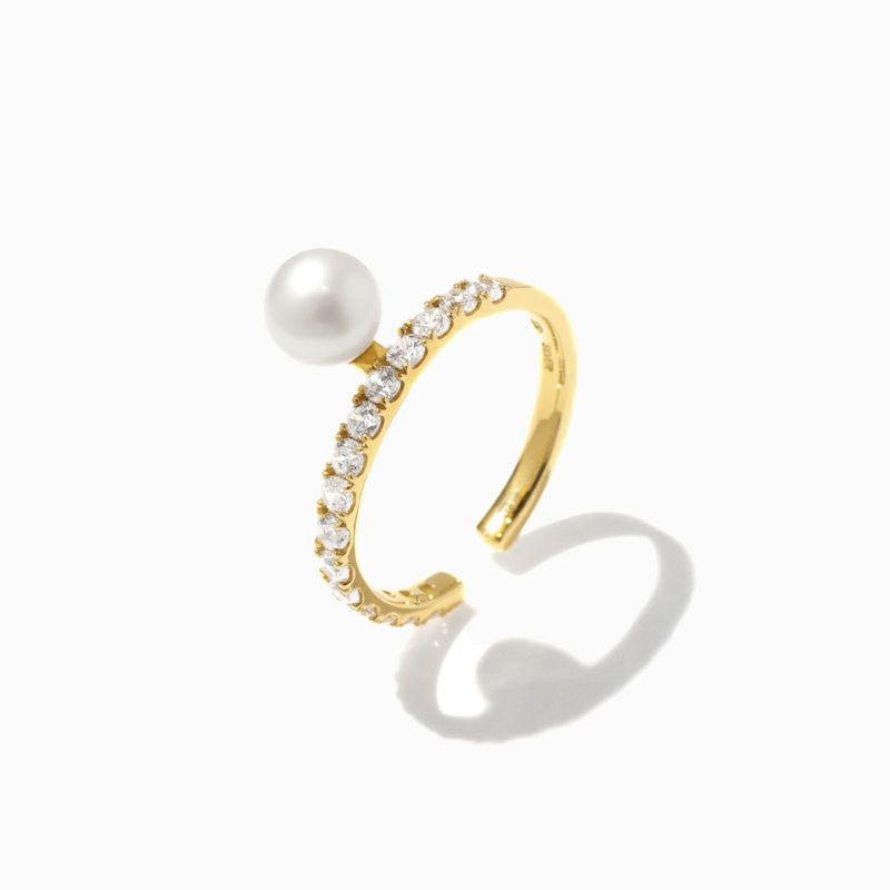 ハーフエタニティ淡水パールイヤーカフリング(ゴールド)