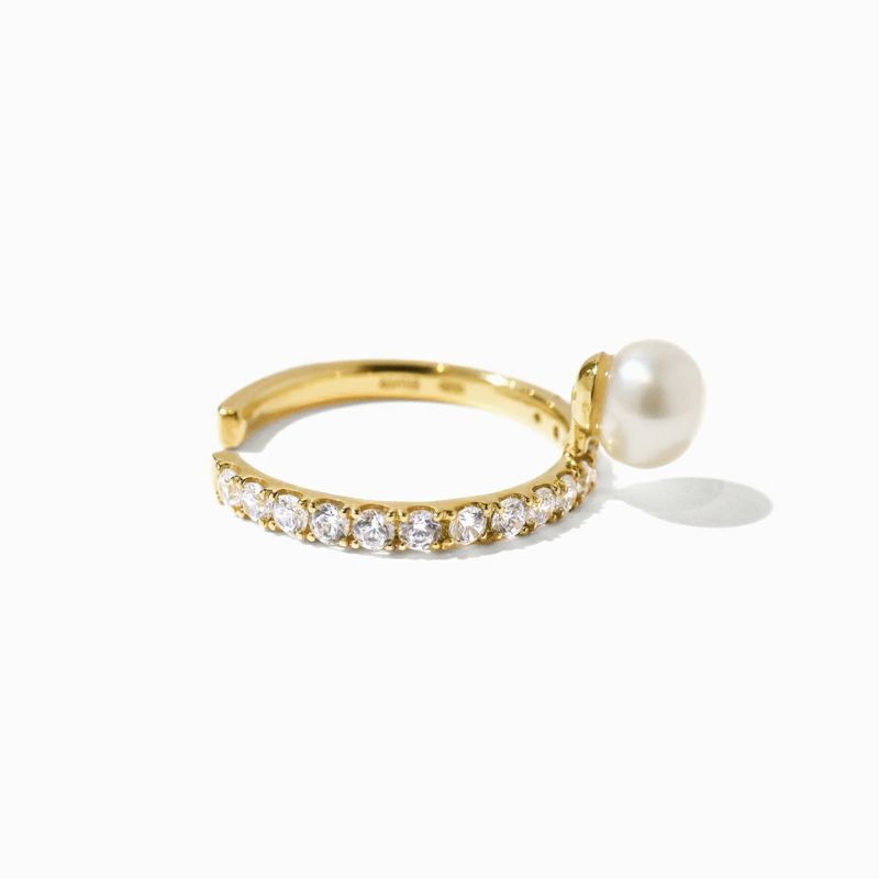 シンプルなハーフエタニティカフは、リングとしても使える2wayタイプ。 浮いた様にセッティングされた淡水パールがポイント。 上品に輝くキュービックジルコニアは、 カジュアルにもフォーマルにも万能なアイテムです。 カラーは2色展開なのでお持ちのアイテムに合うカラーを。 リングとしてもデイリーアイテムとして活躍します。