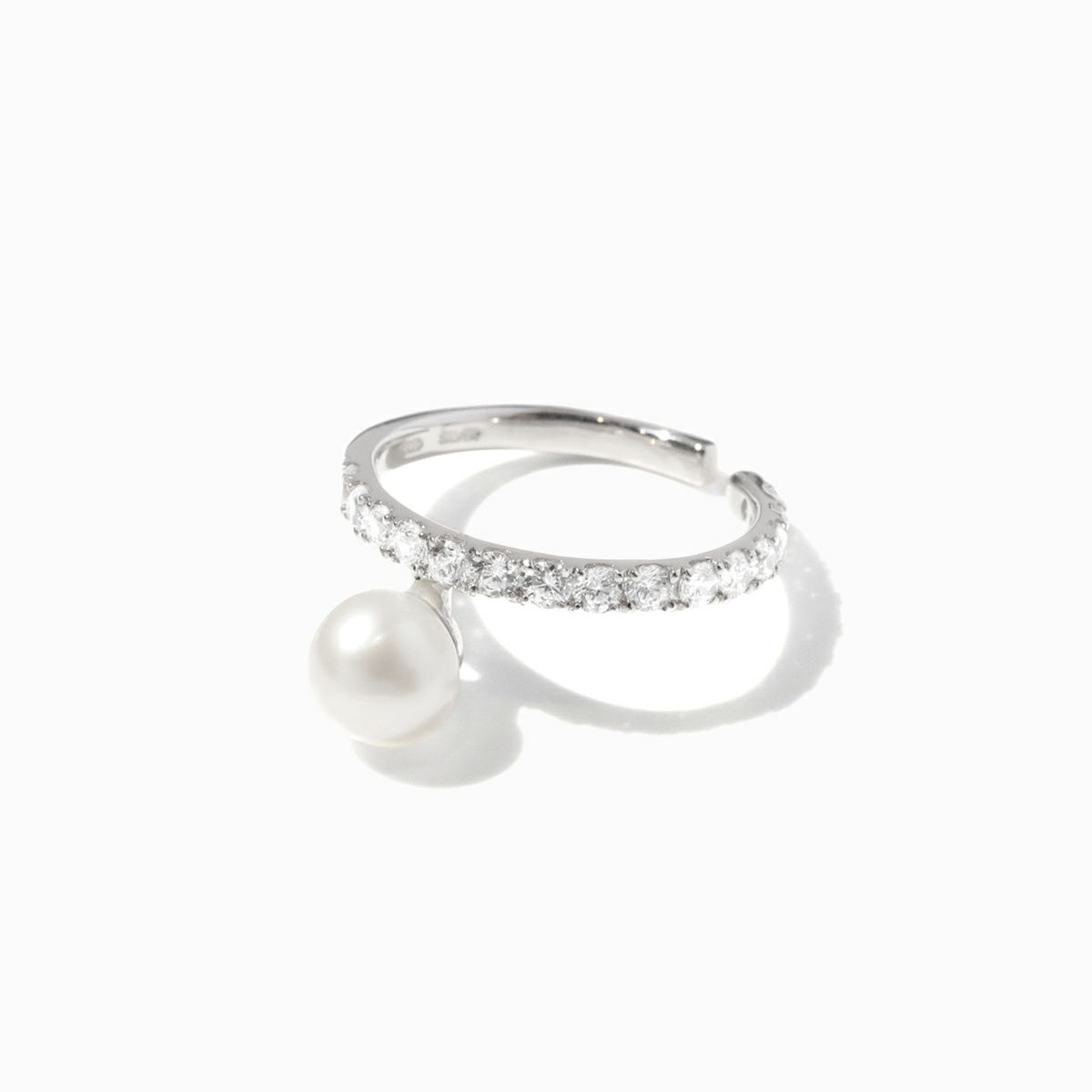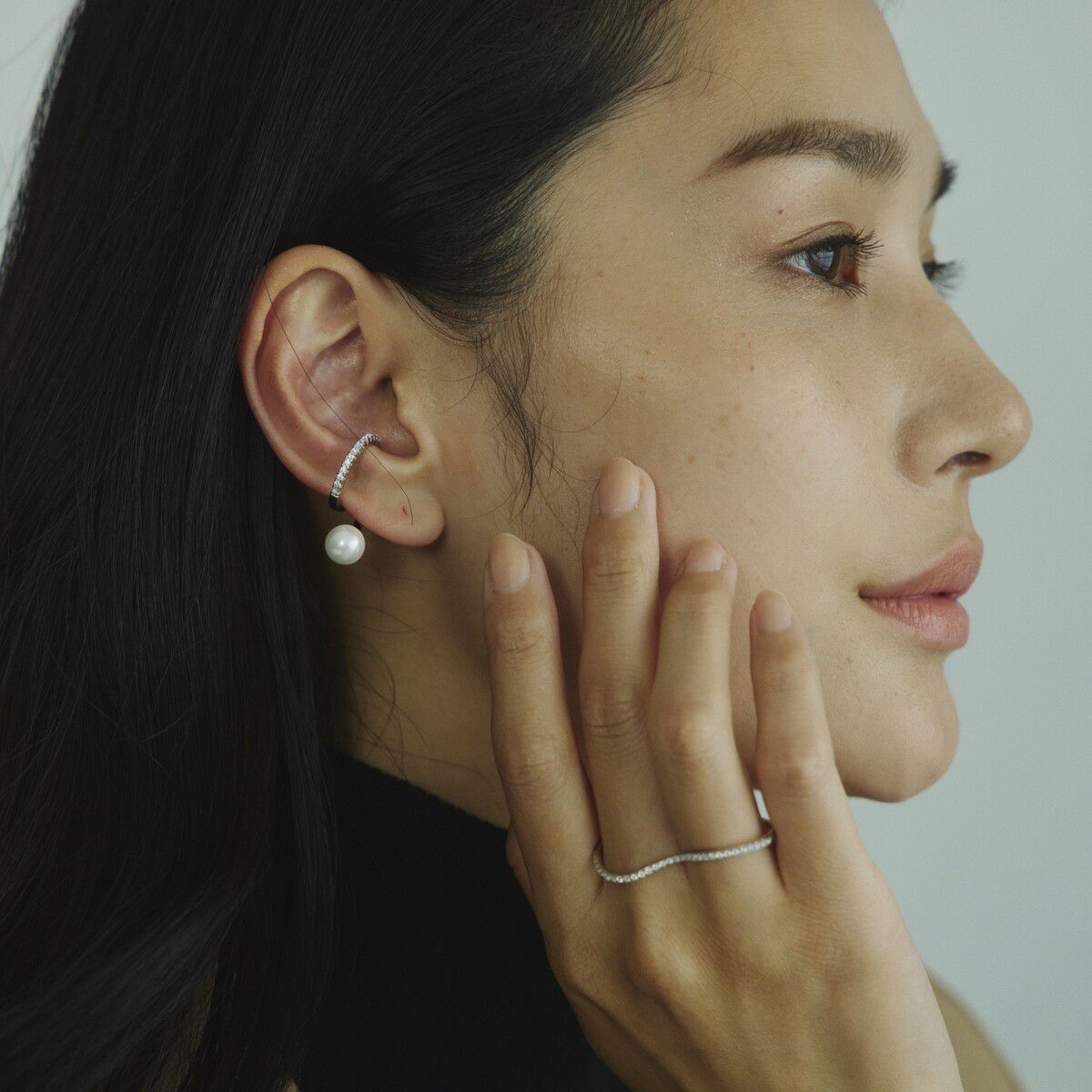 ハーフエタニティ淡水パールイヤーカフリング(シルバー)