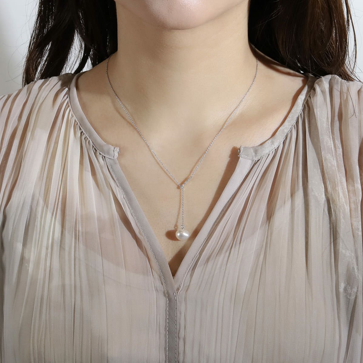 淡水パール×ビジューバーY字ネックレス(シルバー)