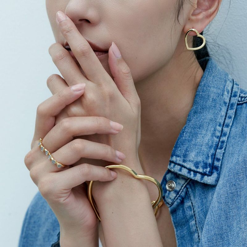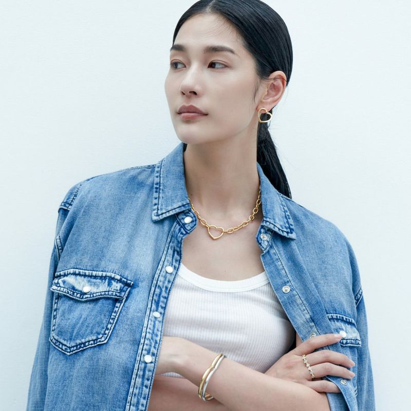 手書きをしたようなハートモチーフのピアス。挟みこむような形がユーモア溢れるデザインです。 甘くなりがちなハートも、シャープで立体感のあるメタルラインにすることで大人の雰囲気にしてくれます。シンプルなコーディネートのアクセントとして、デイリーユースに活躍できるアイテム。