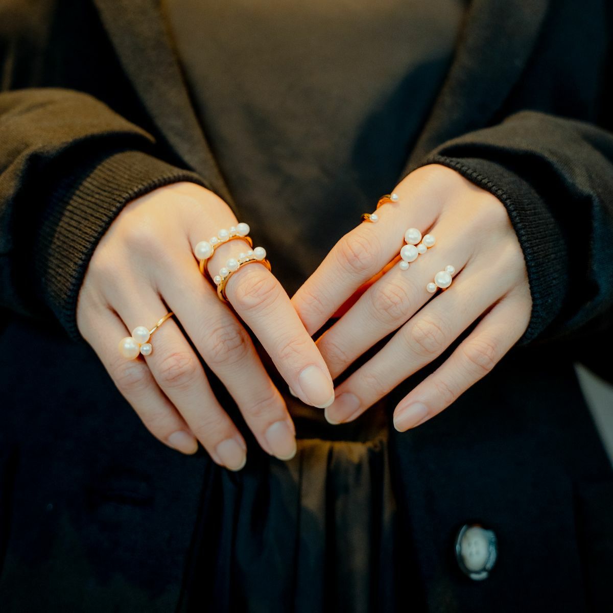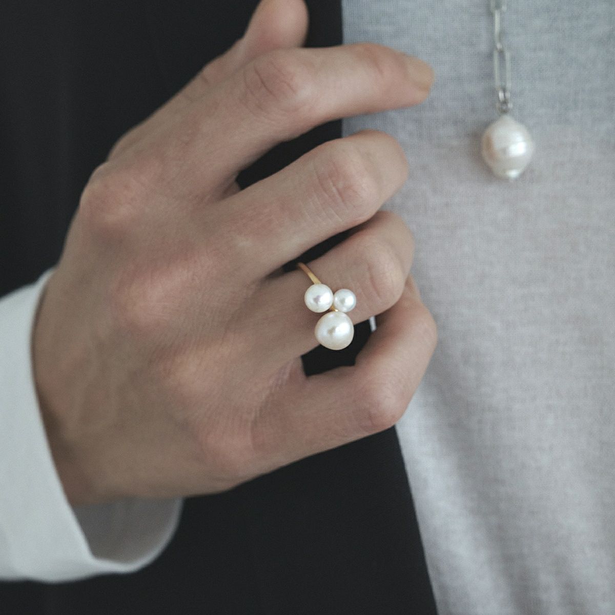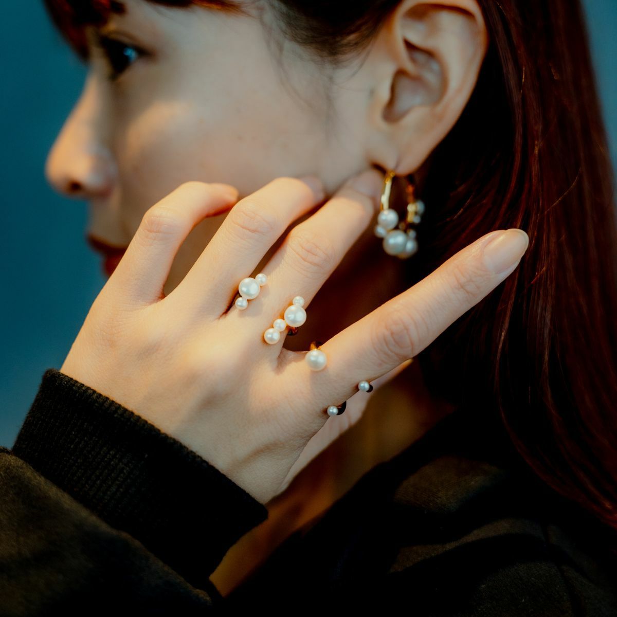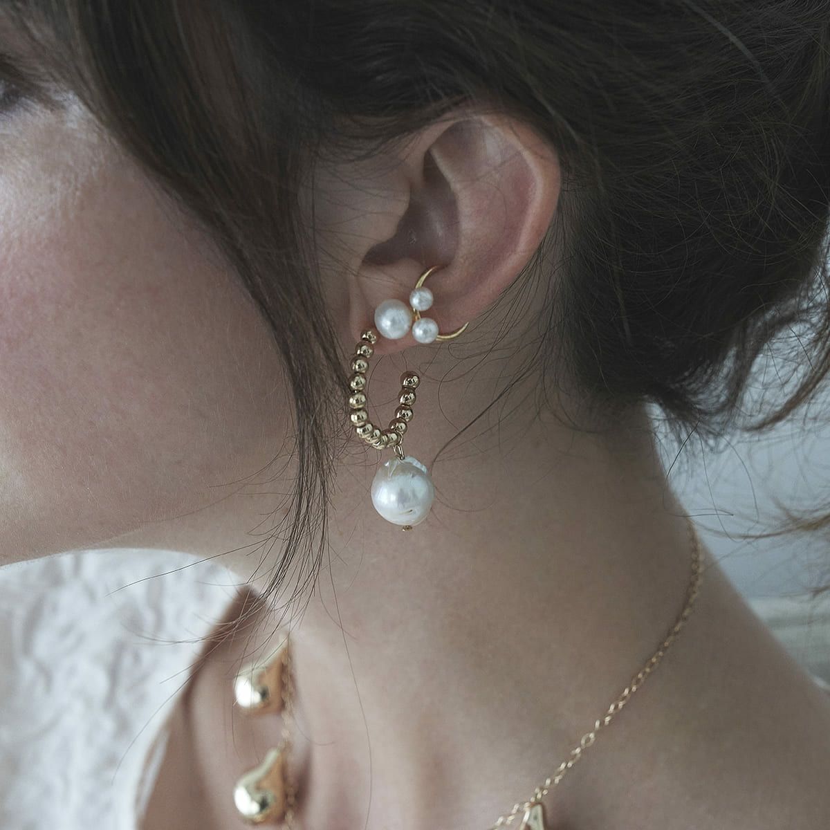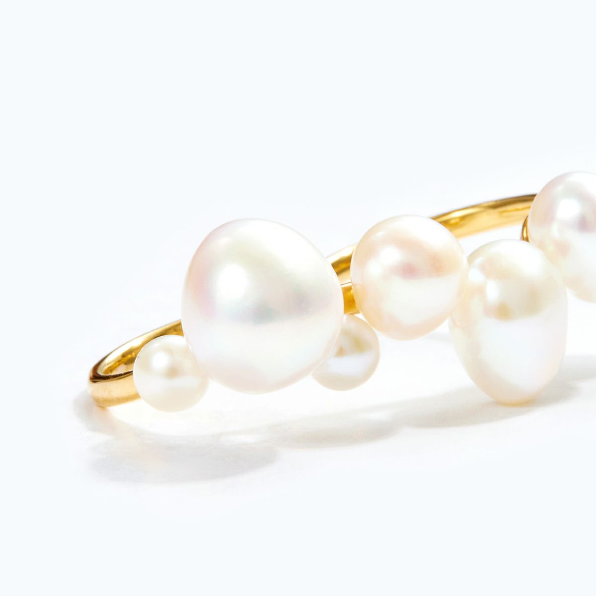 自由に泡が弾ける様子をイメージしたバブルパール。 ランダムなサイズの淡水パールをアンバランスに配置し、 カジュアルさをプラスすることで、パールアイテムをデイリー使いにも。 ひとつプラスするだけでいつもと違った印象を演出。