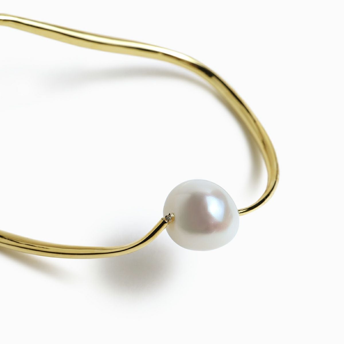 ハーフエタニティ淡水パールイヤーカフリング(ゴールド)