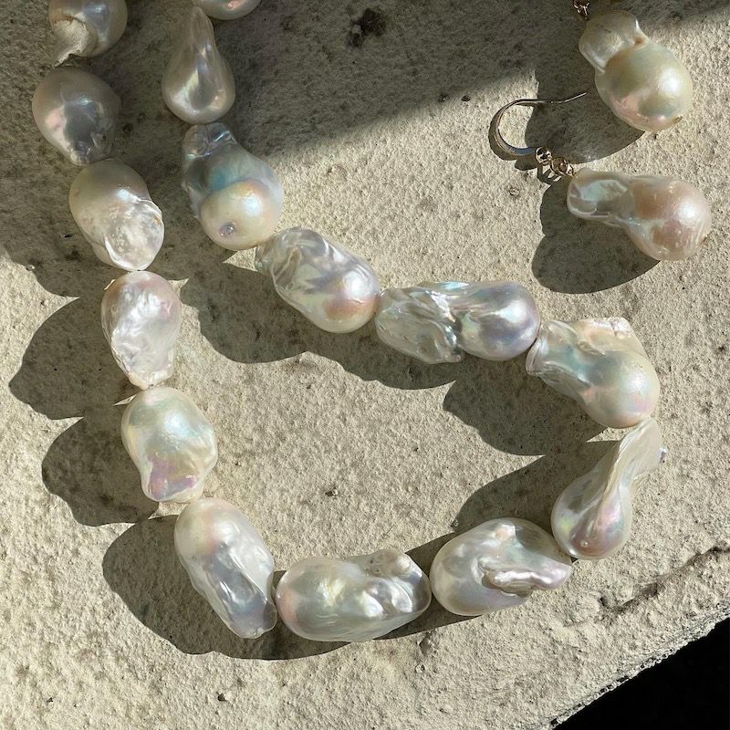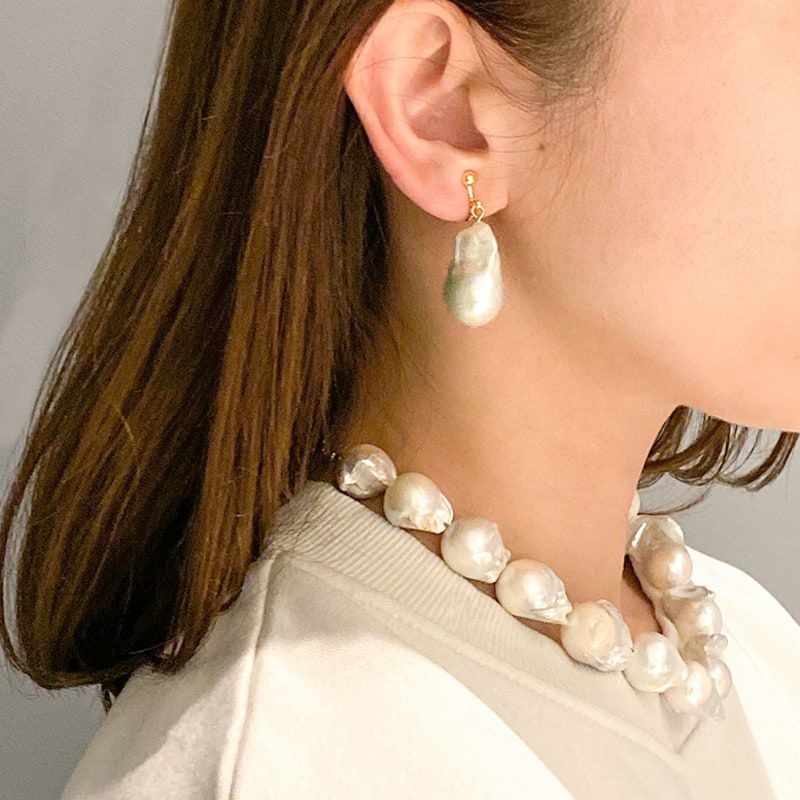 ビッグバロックパールネックレス×イヤリングSET(ホワイト)