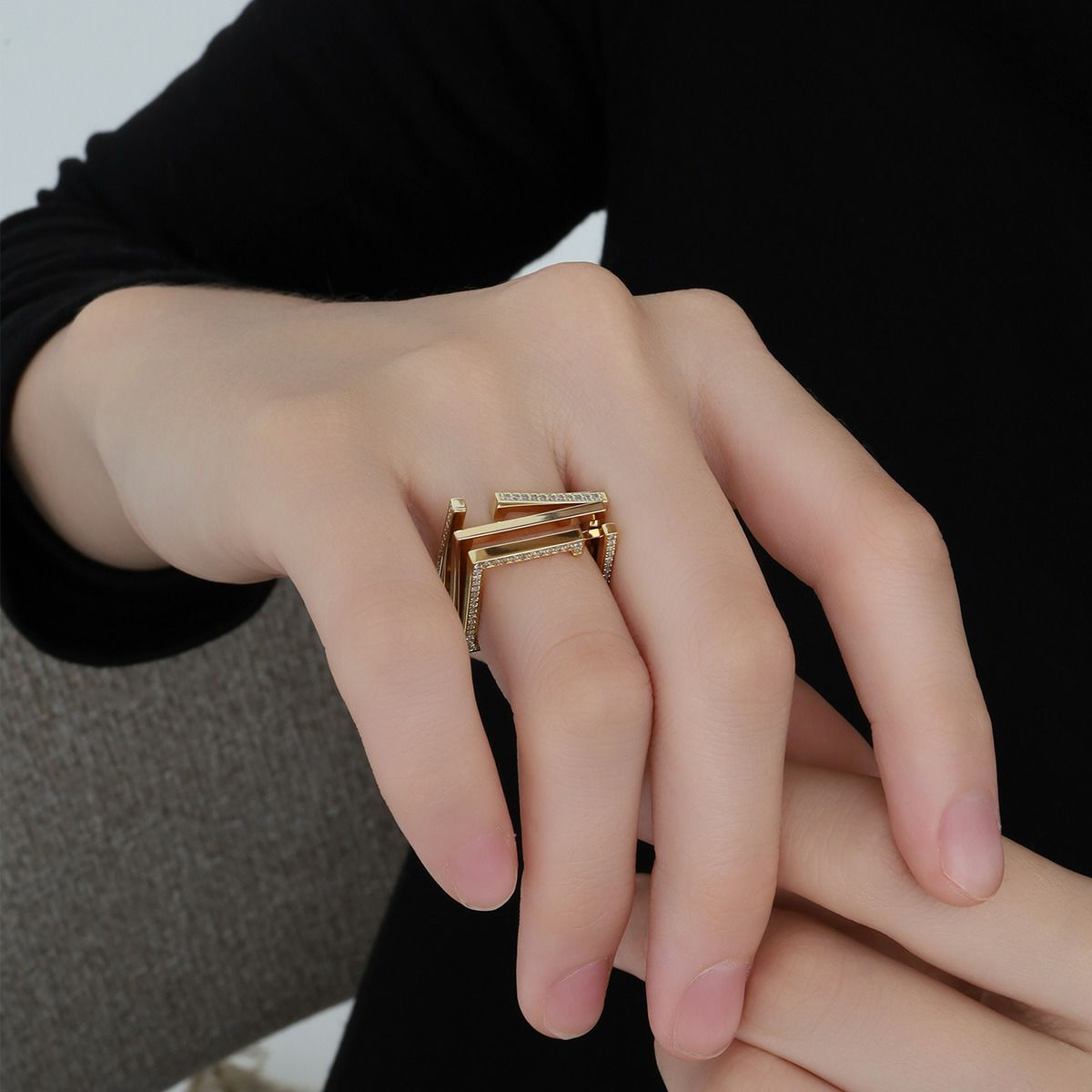 ストラクチャルトップビジューイヤーカフリング(ゴールド)