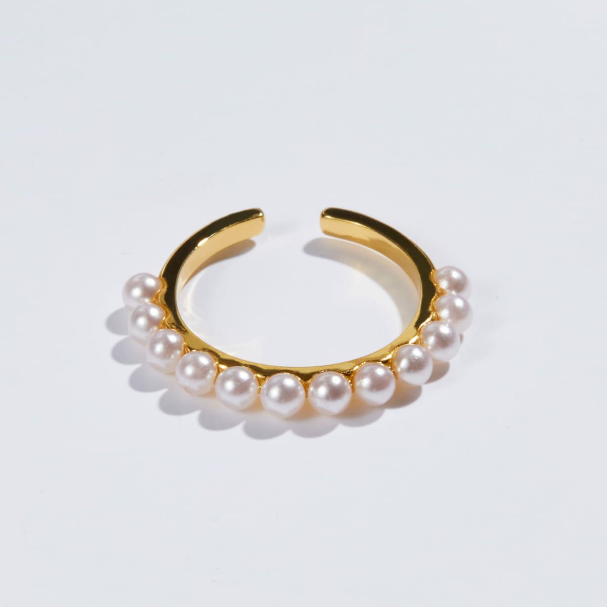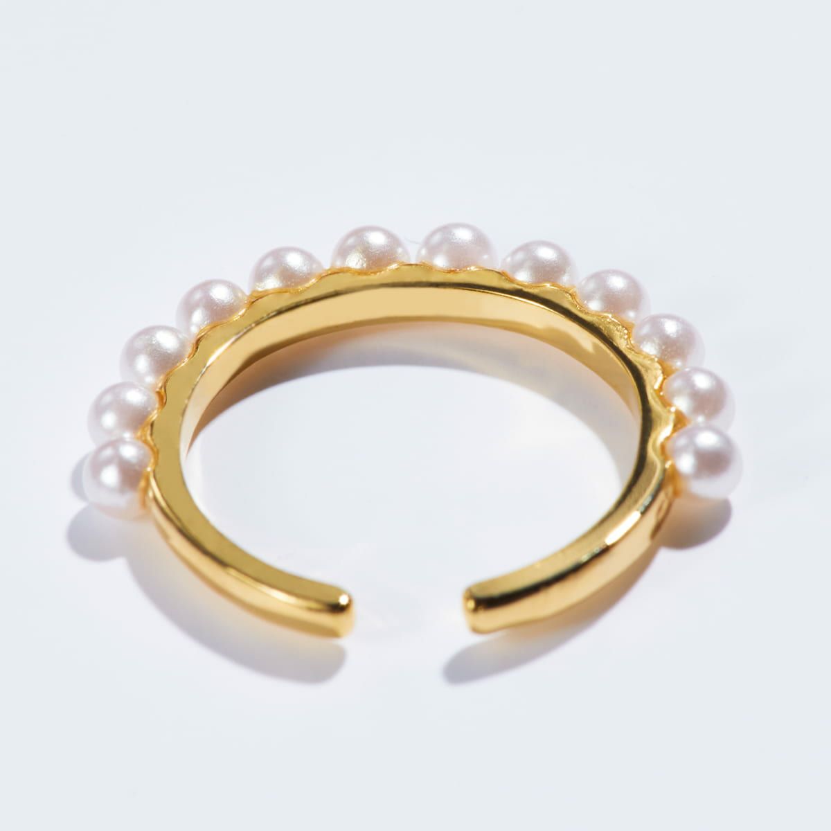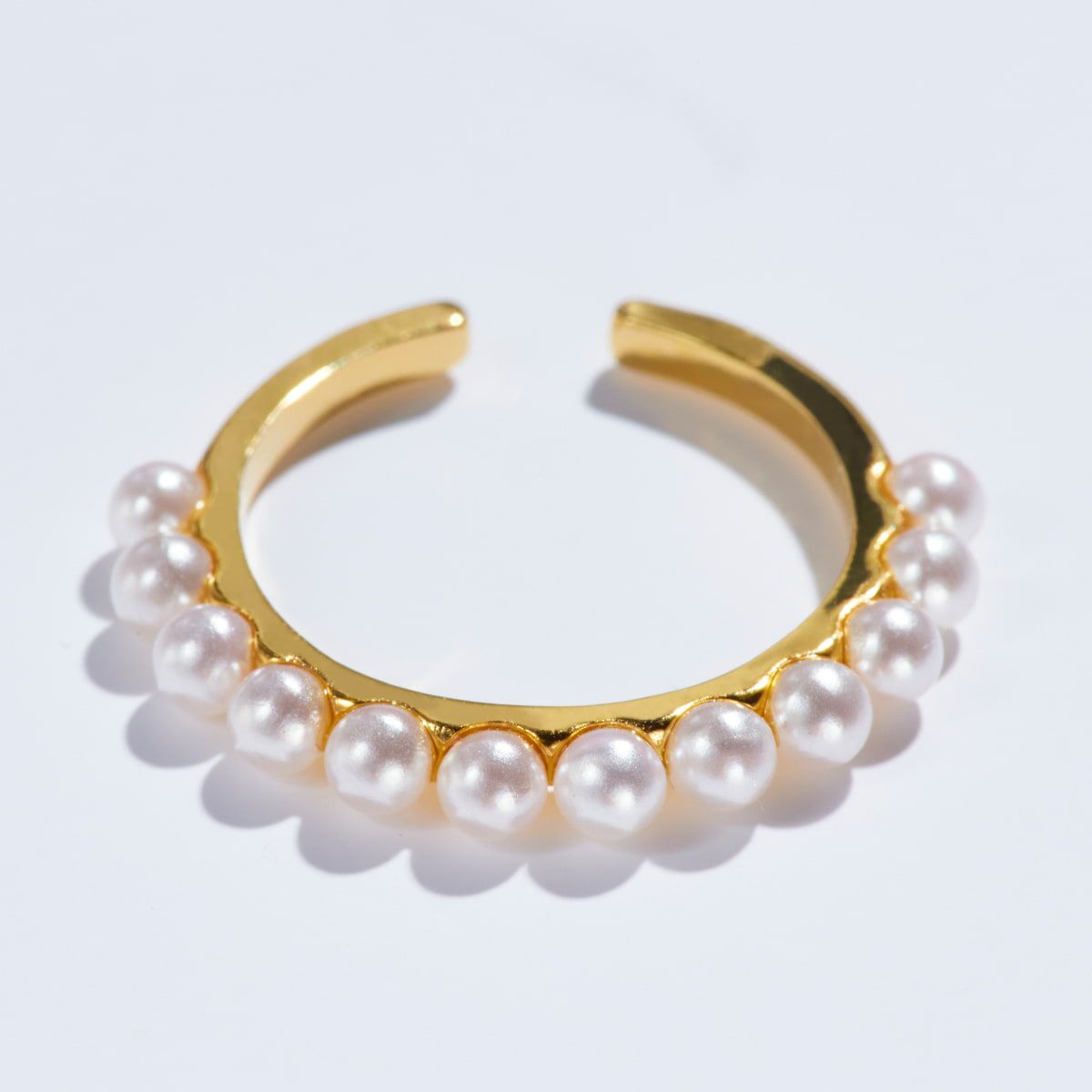 ハーフエタニティ淡水パールイヤーカフリング(ゴールド)