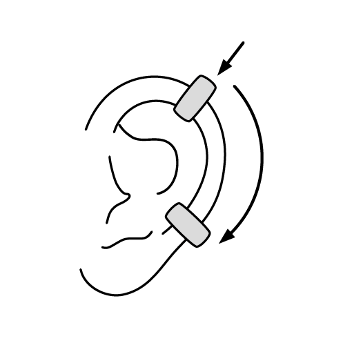 ②つけたい軟骨の位置までスライドさせ着用します。指で軽く挟むようにして固定させたり、落ちてこないか少し引っ張ったりして確認します。