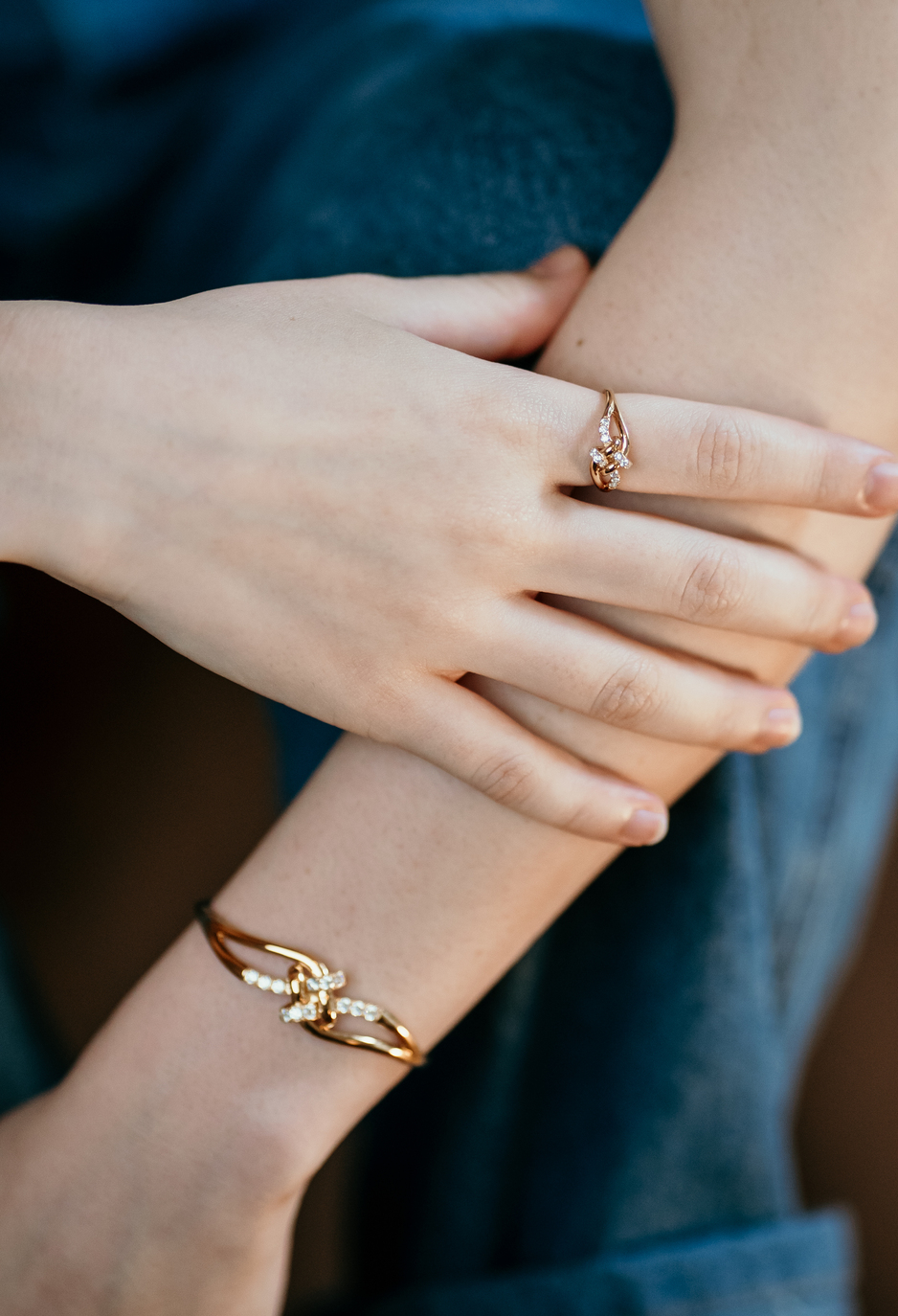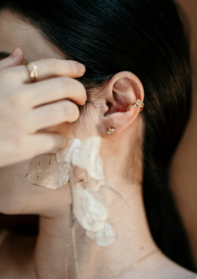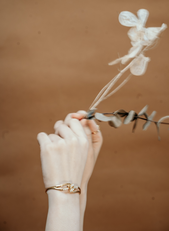 ジルコニアとゴールドの異素材を結んだ