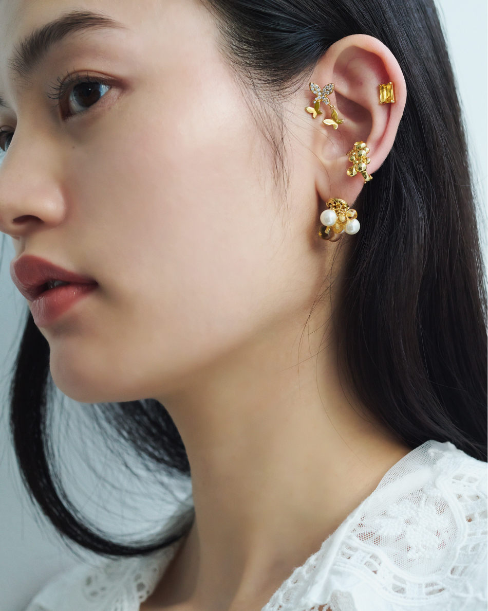 ミモザのフォルムを際立たせ、軽やかに身に付けられます。