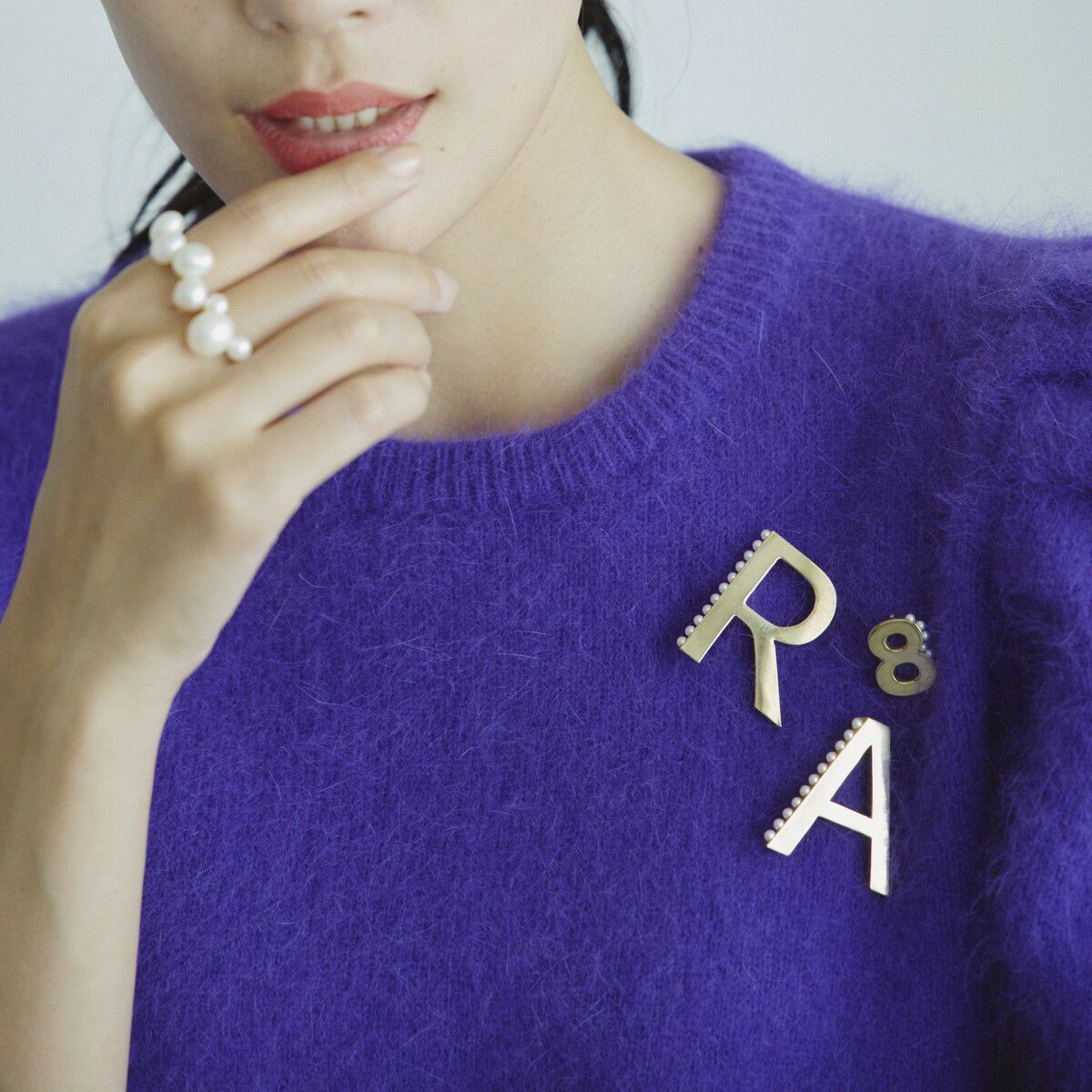 パールドットイニシャルブローチ