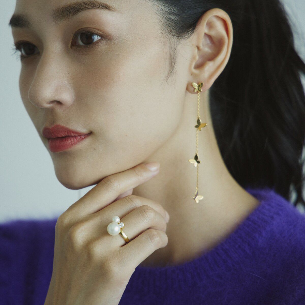 ハーフエタニティ淡水パールイヤーカフリング(ゴールド)